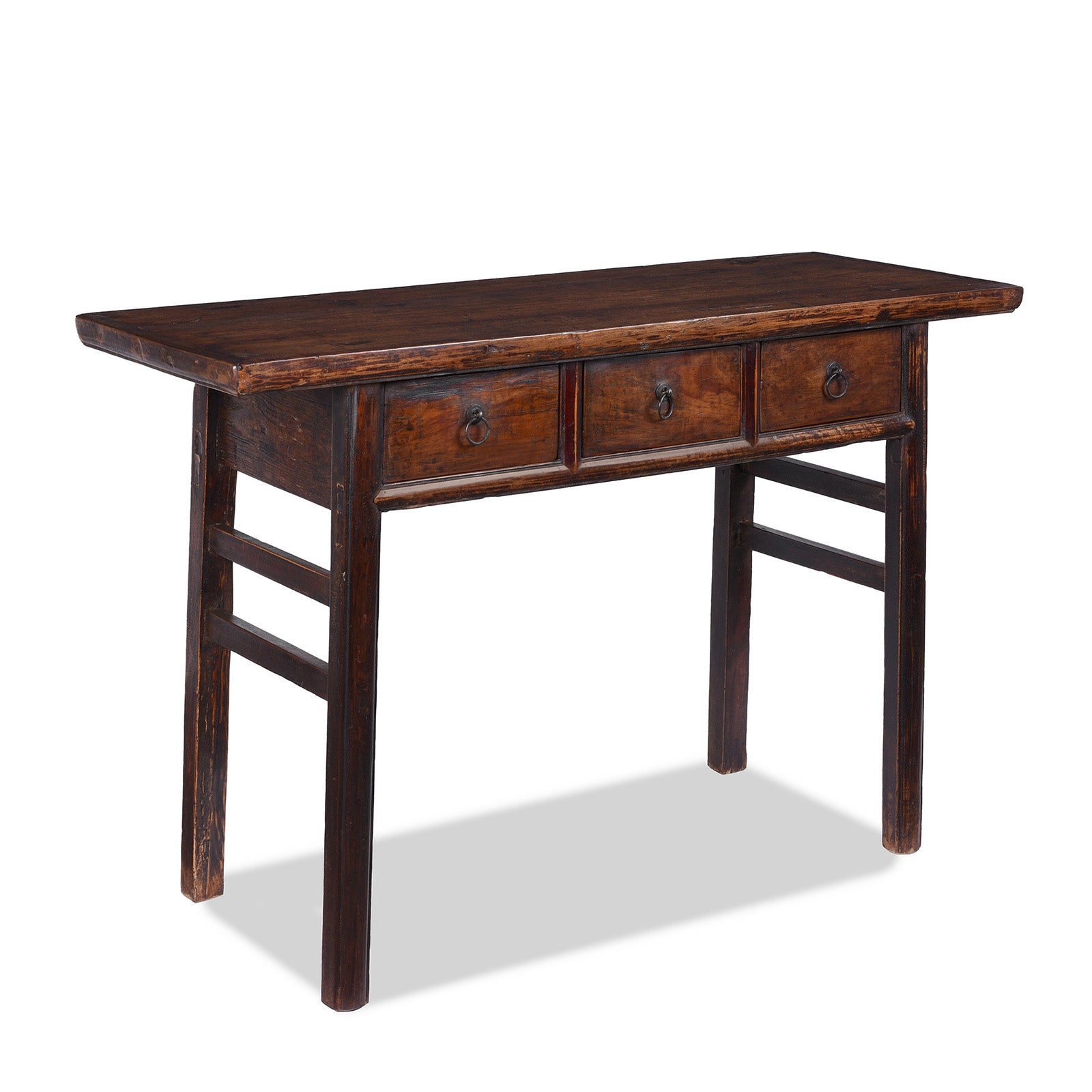 This elegant three-drawer console table dates to the 19th century and originates from Shanxi province in northern China, a region long admired for its restrained, practical domestic furniture. The proportions are calm and balanced, reflecting the quiet confidence of everyday furnishings made for long-term use rather than display.