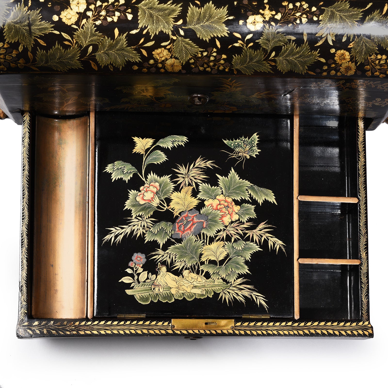 Compartment Detail From Chinoiserie Lacquer Sewing Box - Qing Dynasty Early 19thC | Indigo Antiques