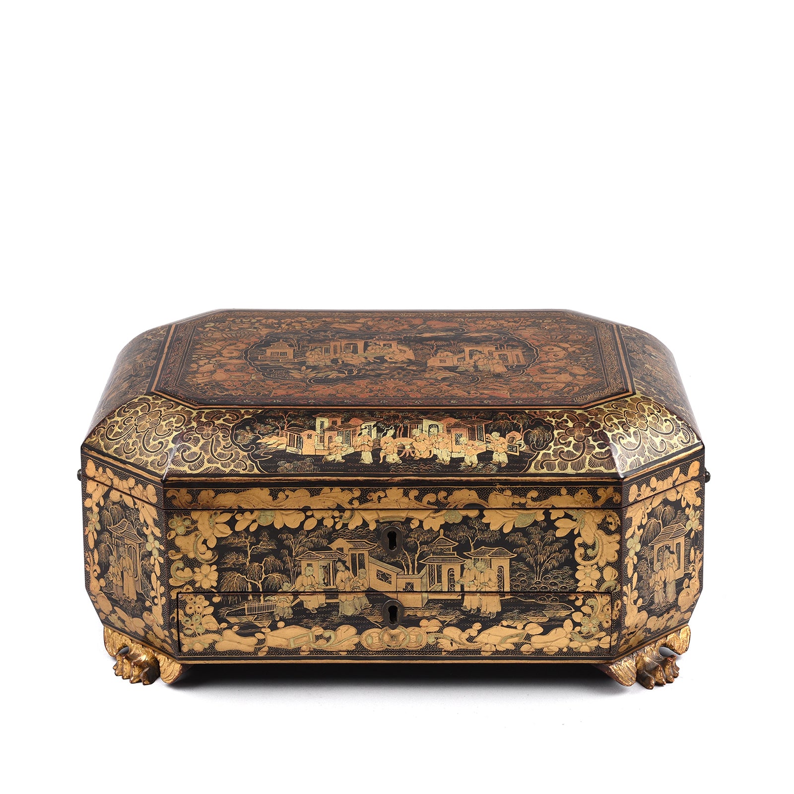 Antique Chinoiserie Lacquer Sewing Box - Qing Dynasty Early 19th Century | Indigo Antiques