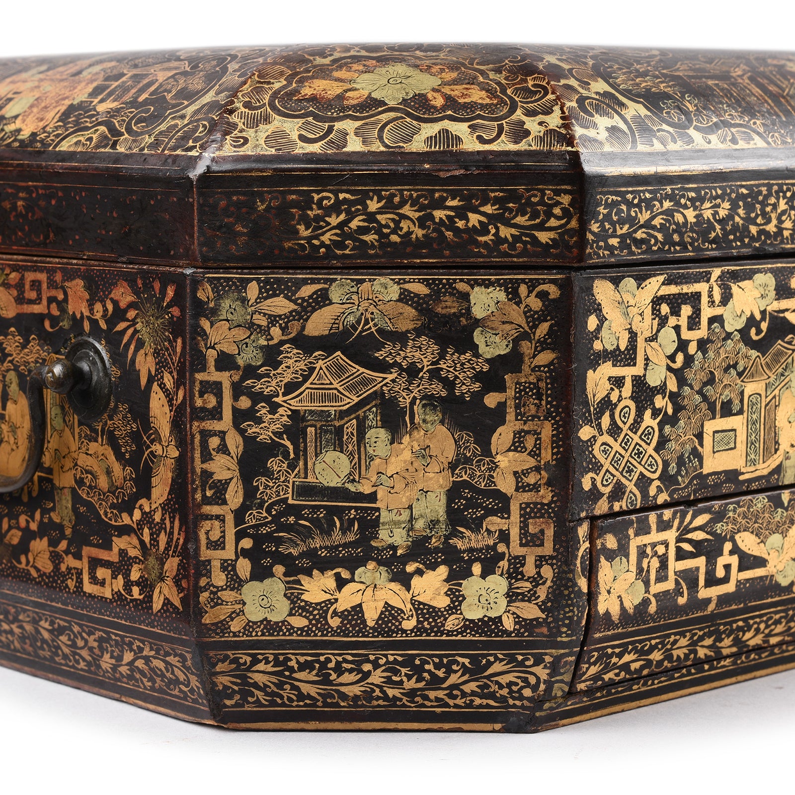 Handle Detail From Chinoiserie Lacquer Sewing Box - Qing Dynasty Early 19th Century | Indigo Antiques