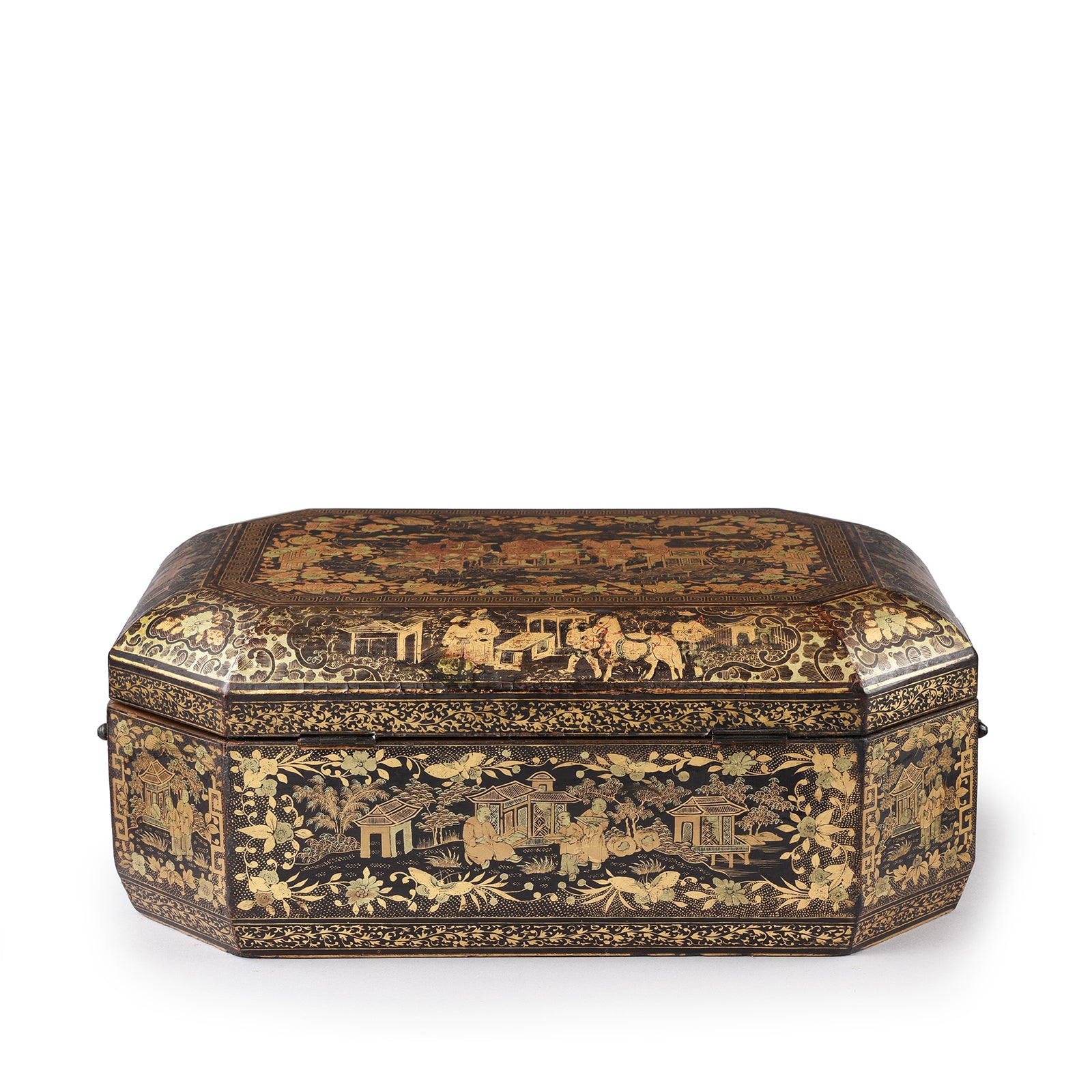 Frontal View Of Chinoiserie Lacquer Sewing Box - Qing Dynasty Early 19th Century | Indigo Antiques