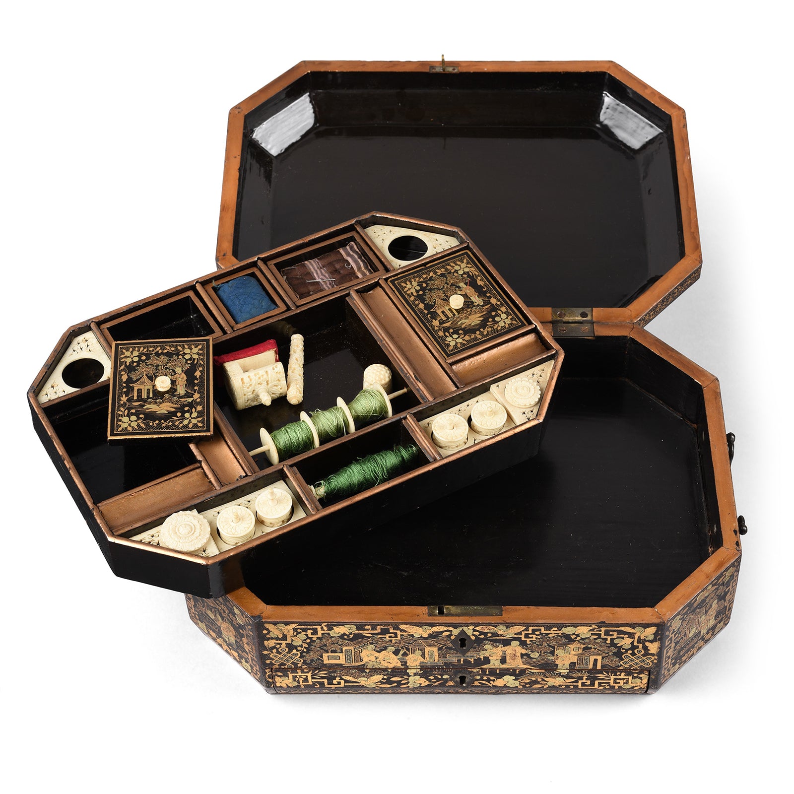 Interior Of Chinoiserie Lacquer Sewing Box - Qing Dynasty Early 19th Century | Indigo Antiques