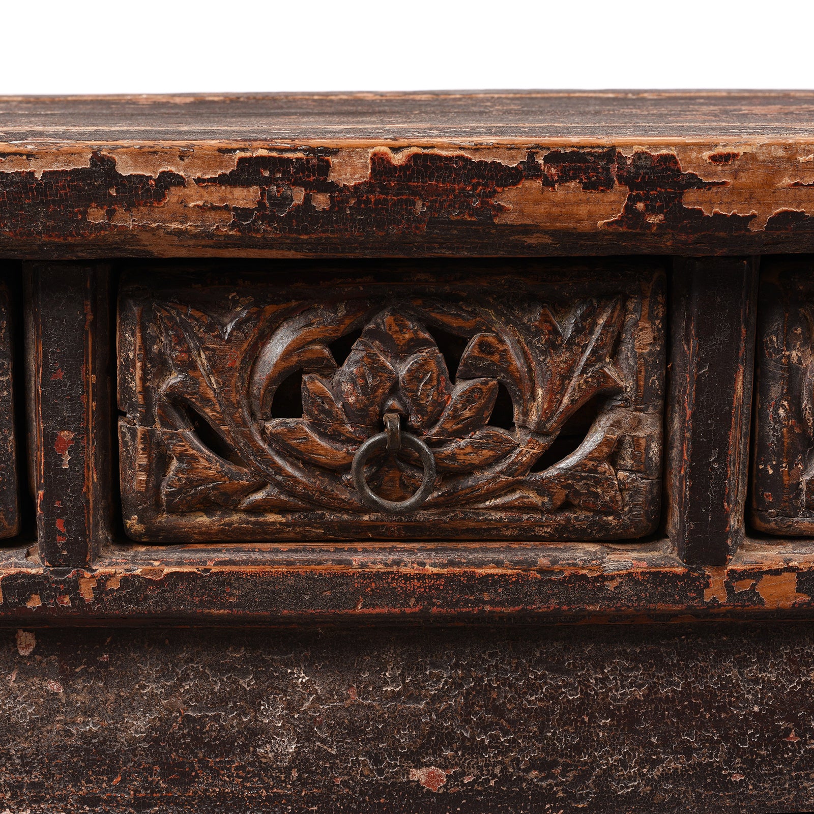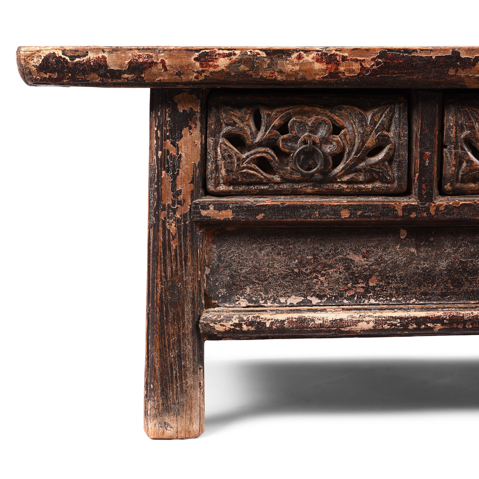Carving Detail From Antique Elm Kang Table From Shanxi  - 19th Century | Indigo Antiques