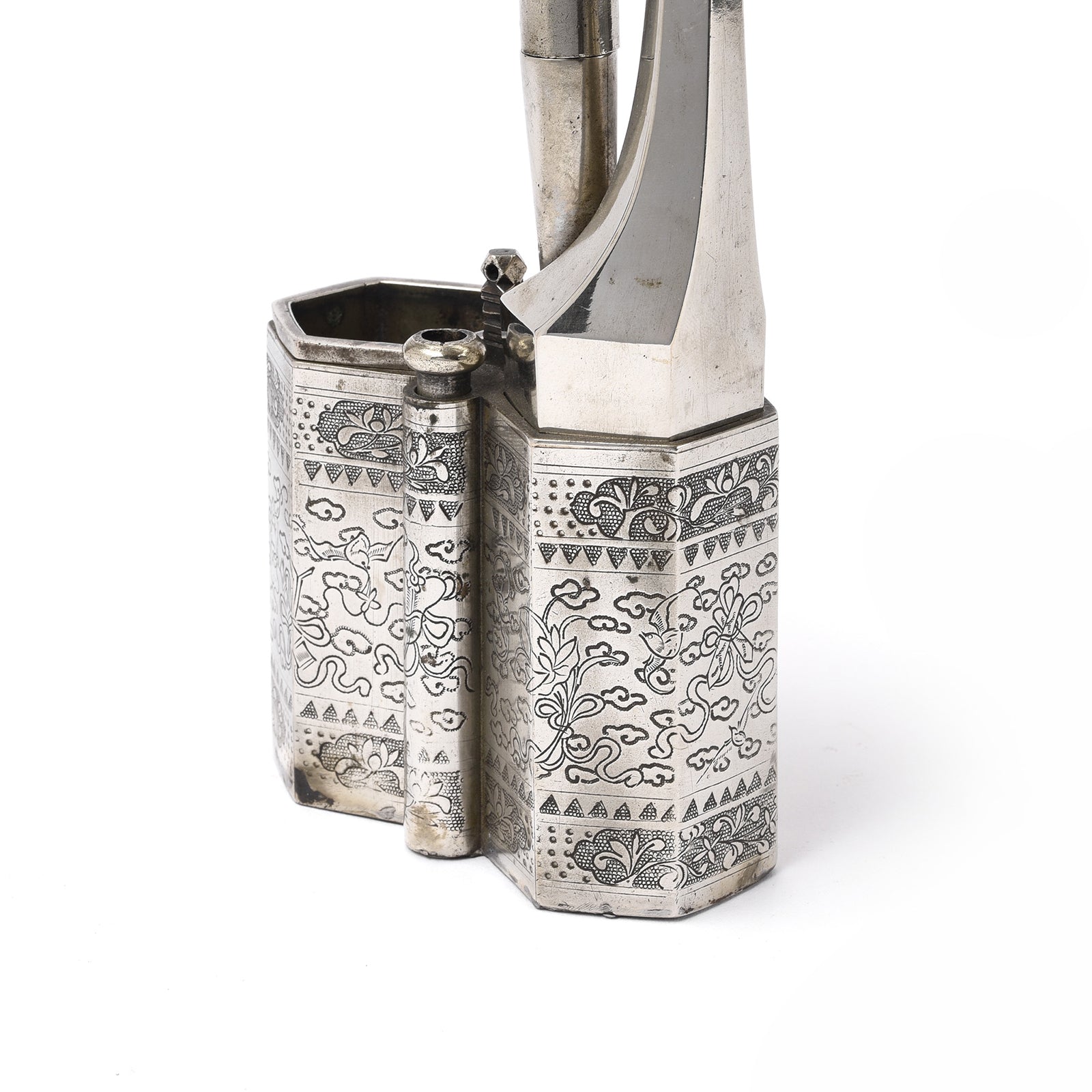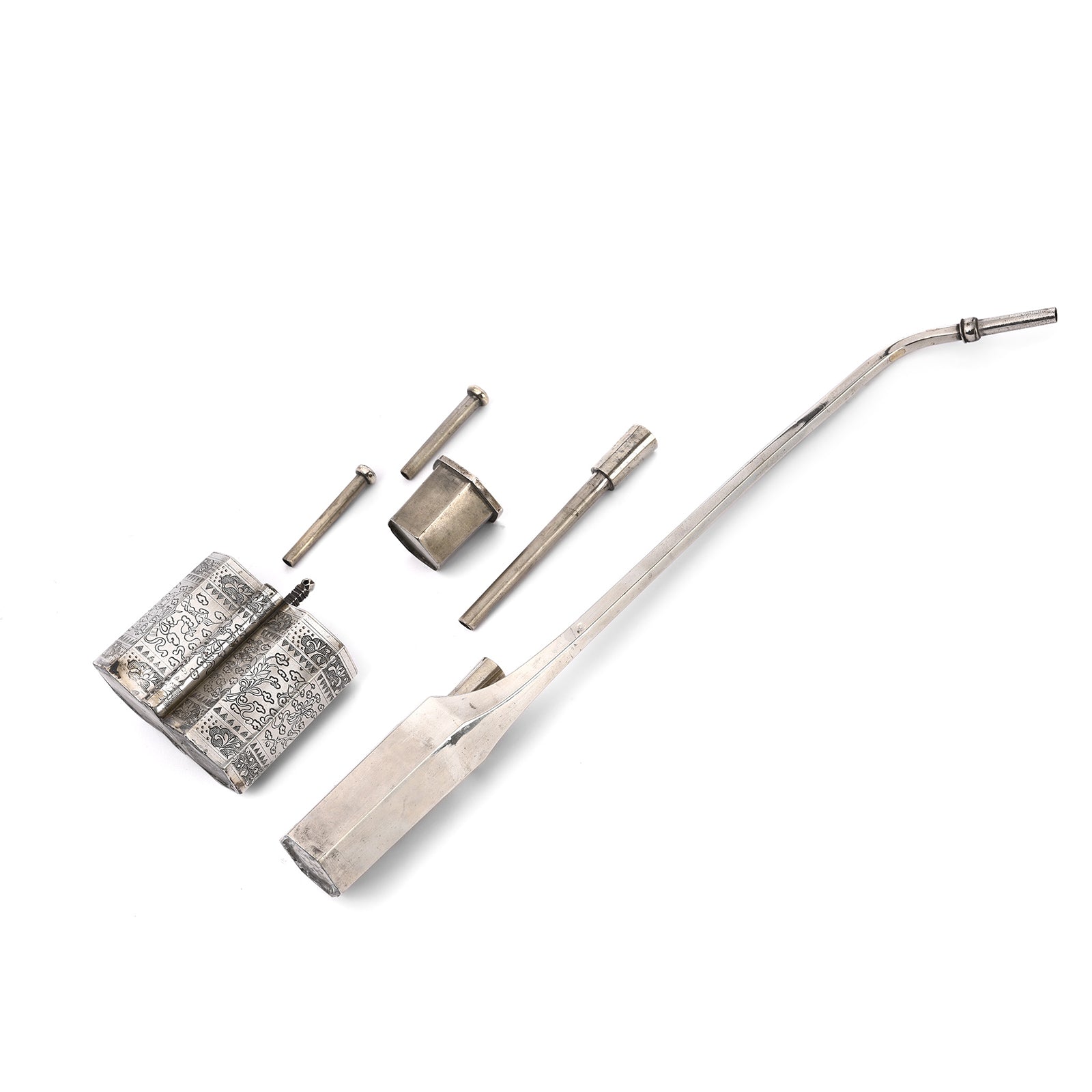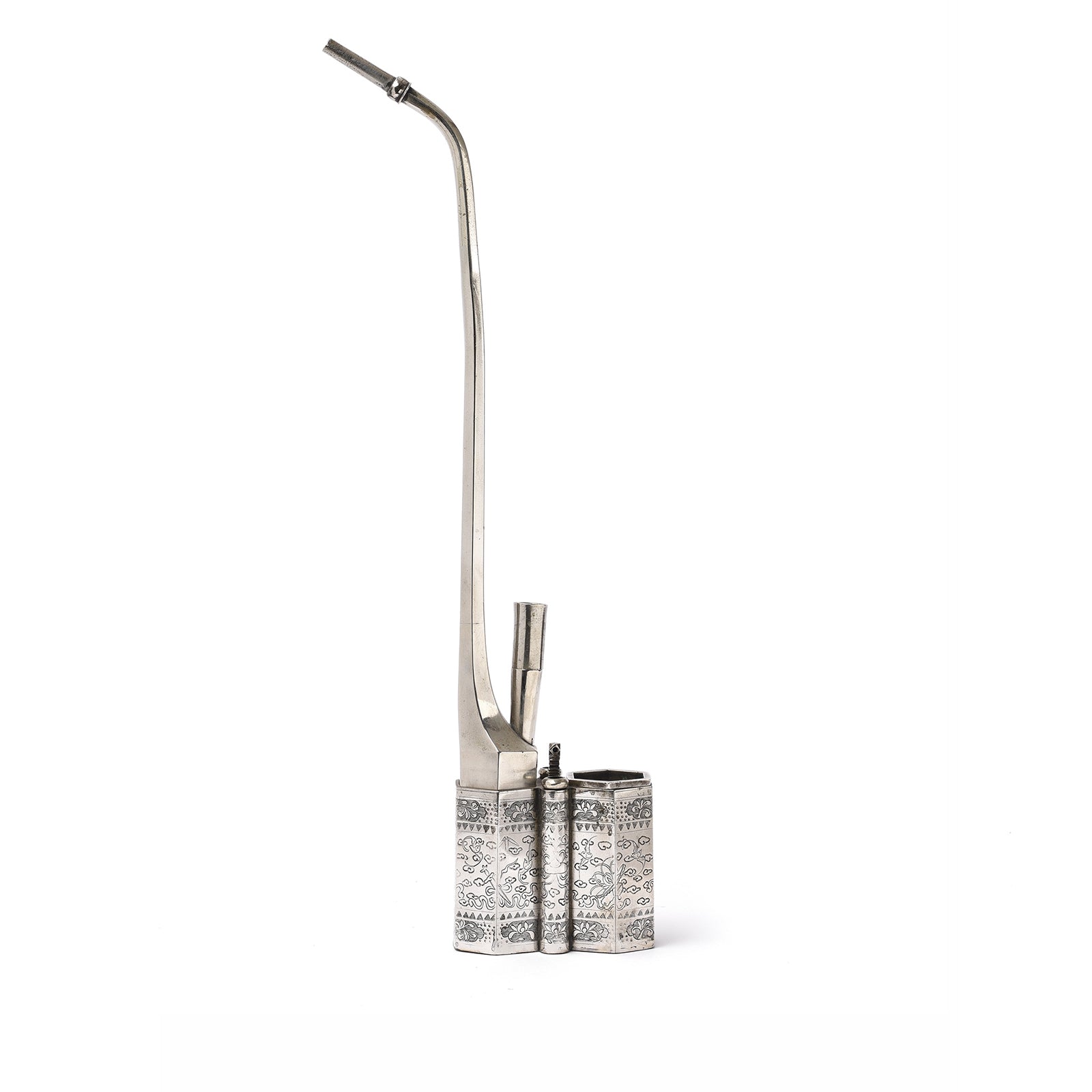 Deconstructed View Of Antique Engraved Paktong Chinese Water Pipe - Ca 1900 | Indigo Antiques