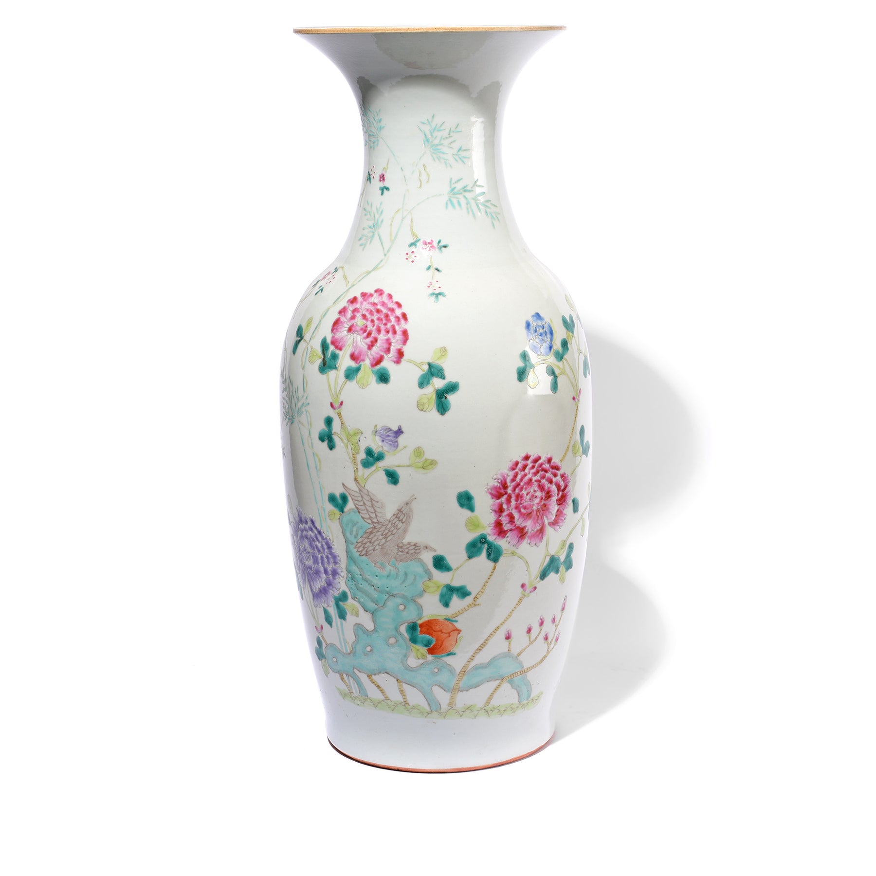 Reverse Of Famille Rose Porcelain Flower Vase - Floral Design | Indigo Antiques