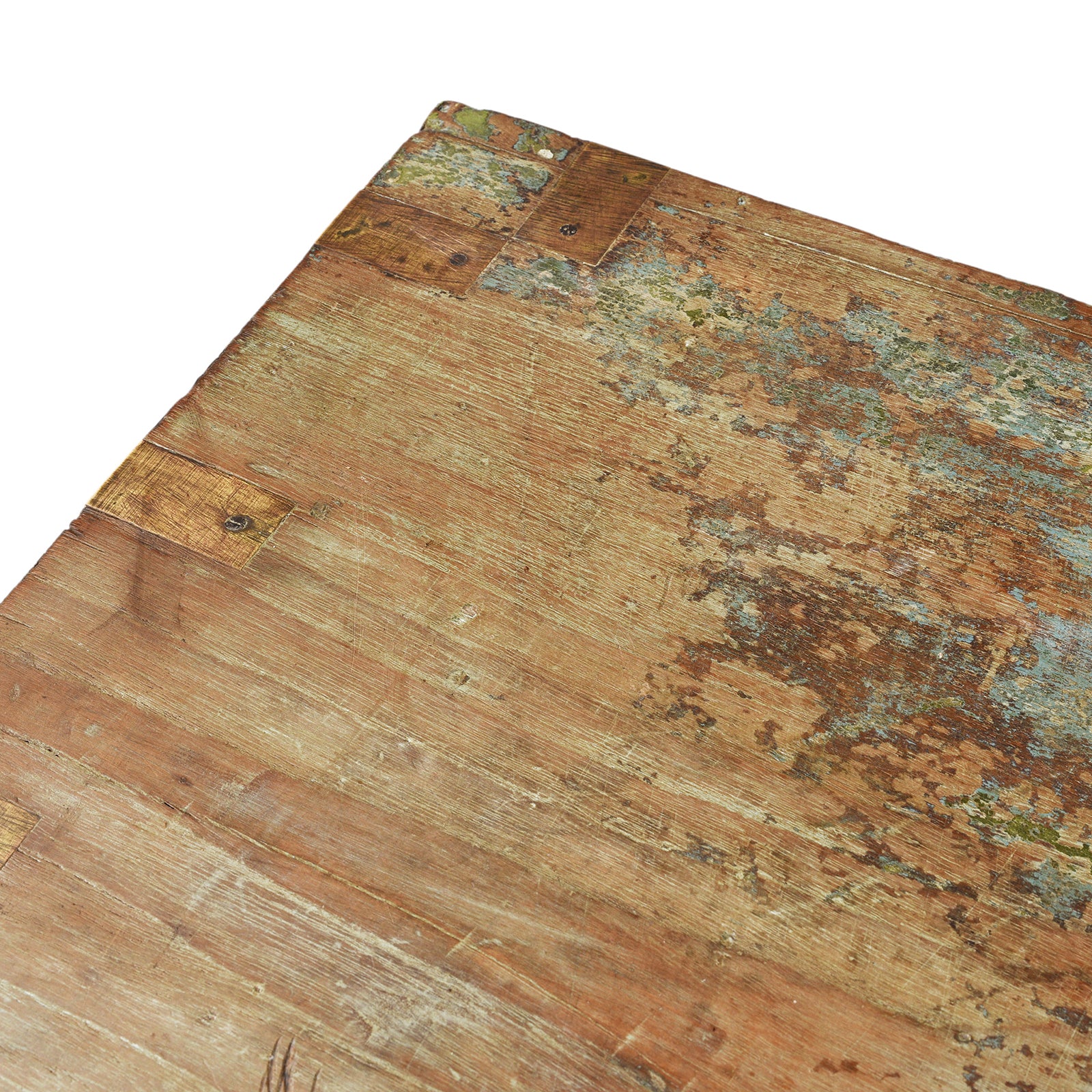 Top Detail From Antique Front Opening Indian Green Painted Teak Military Chest | Indigo Antiques