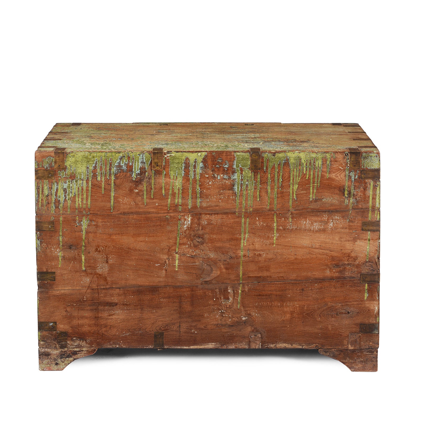 Back Of Antique Front Opening Indian Green Painted Teak Military Chest | Indigo Antiques