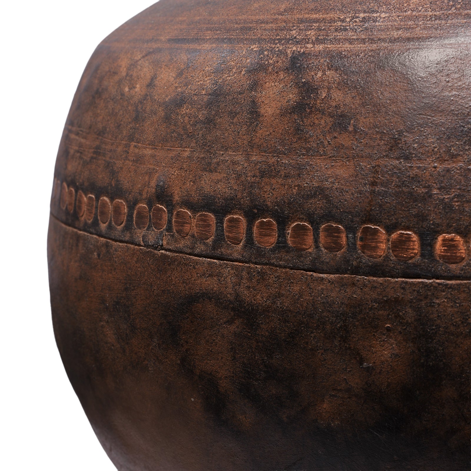 - Features: Rounded form with stamped decorative band