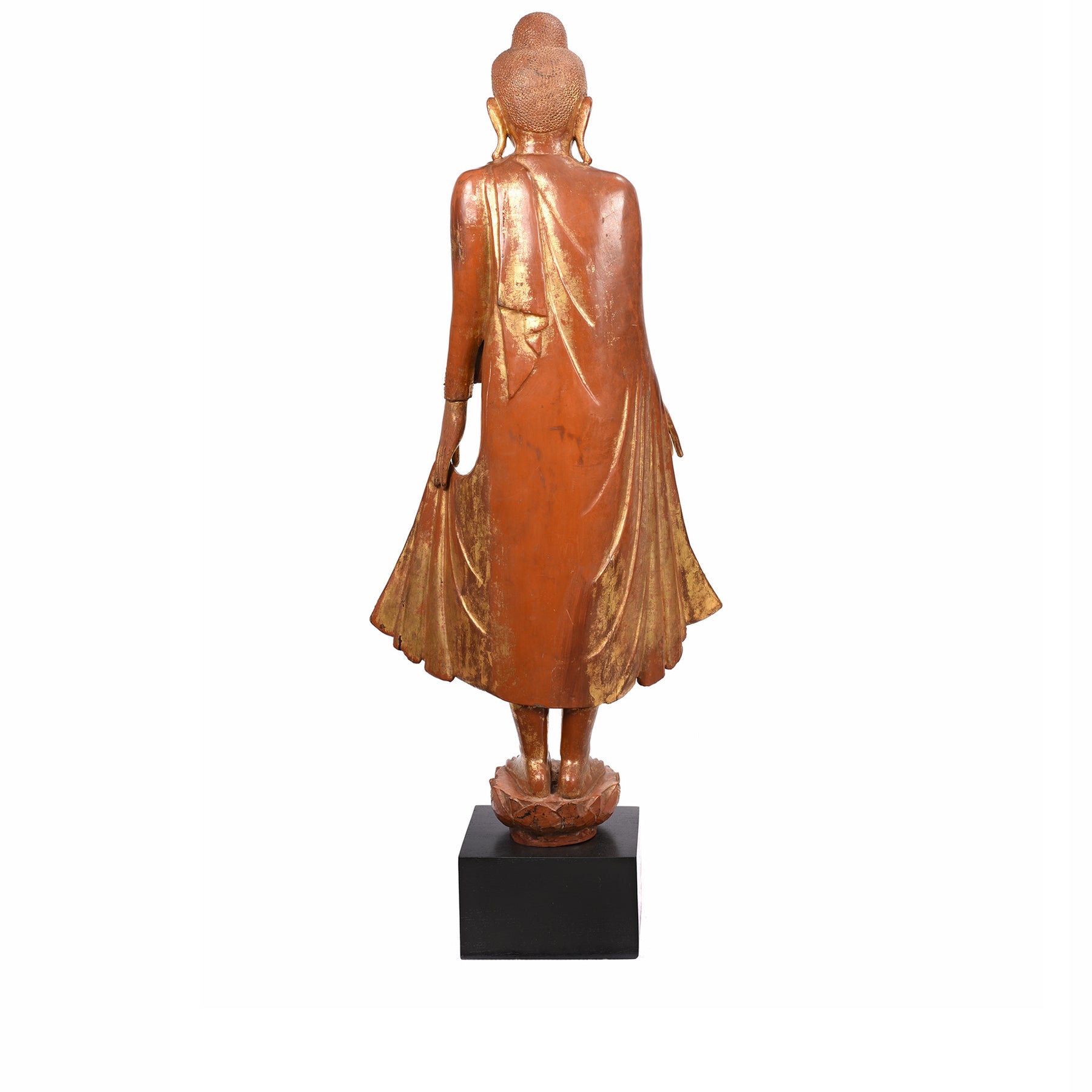 Reverse Of Gilded Teak Burmese Standing Buddha - Early 20thC | Indigo Antiques