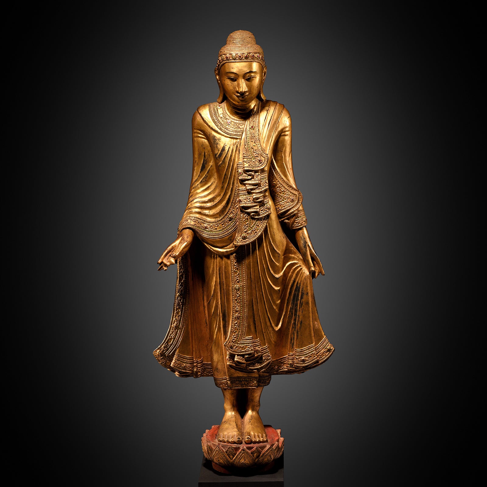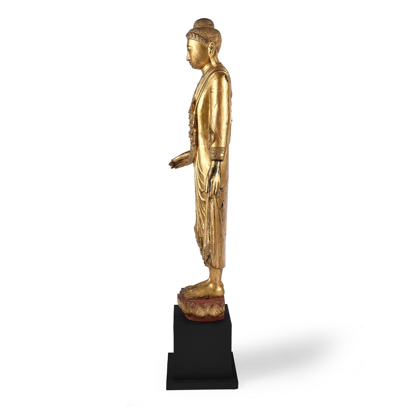 Gilded Teak Burmese Standing Buddha - Early 20thC | Indigo Antiques