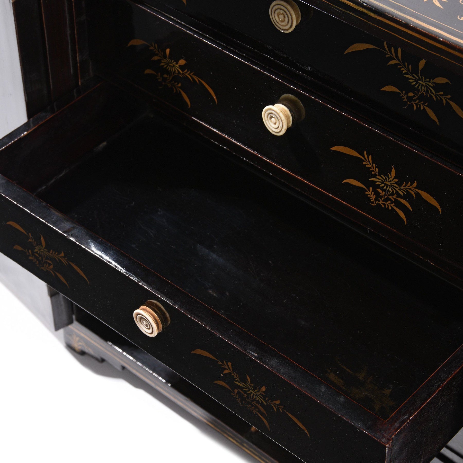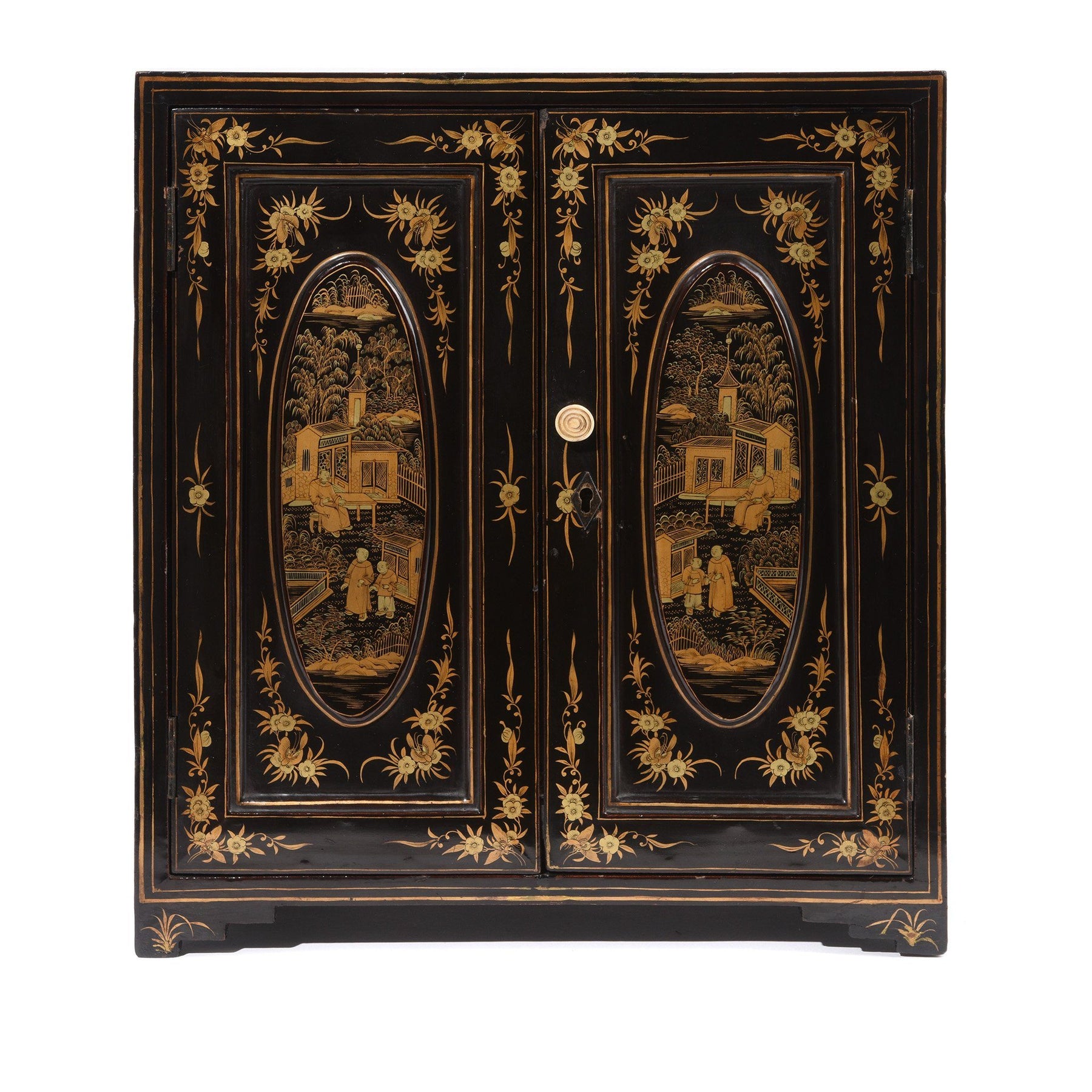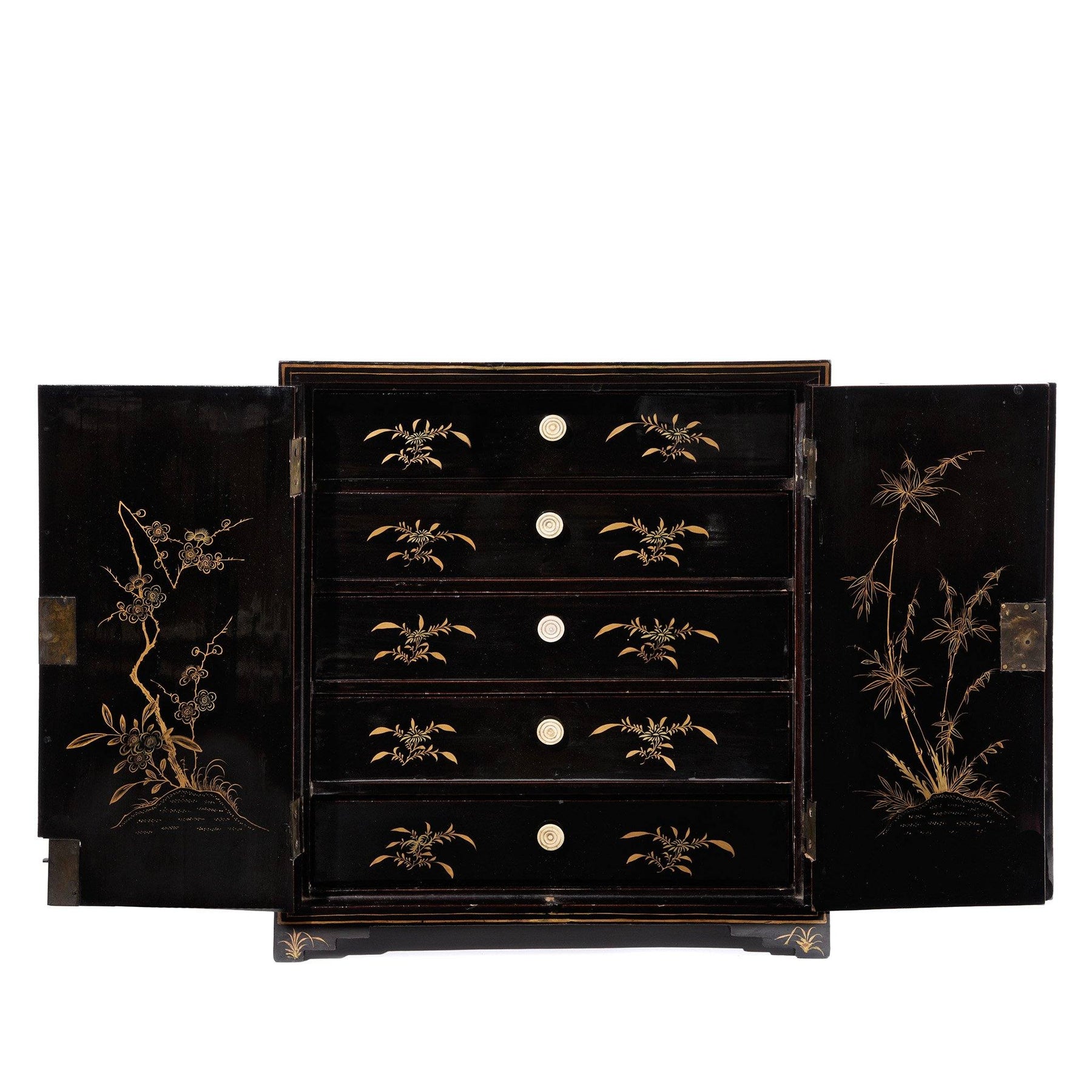 Chinese Export Gilt Black Lacquer Jewellery Table Cabinet - Early 19thC | Indigo Antiques