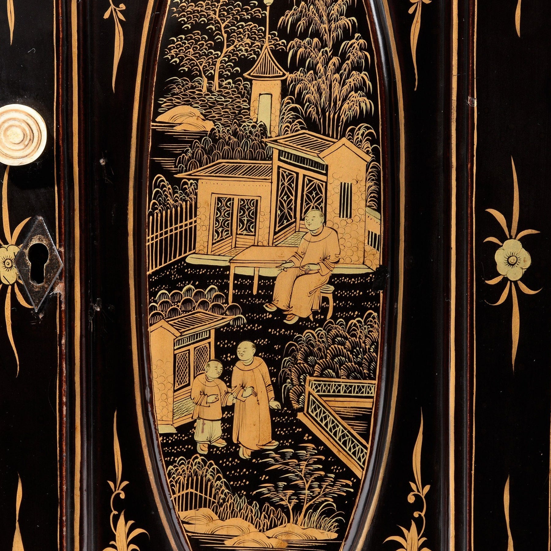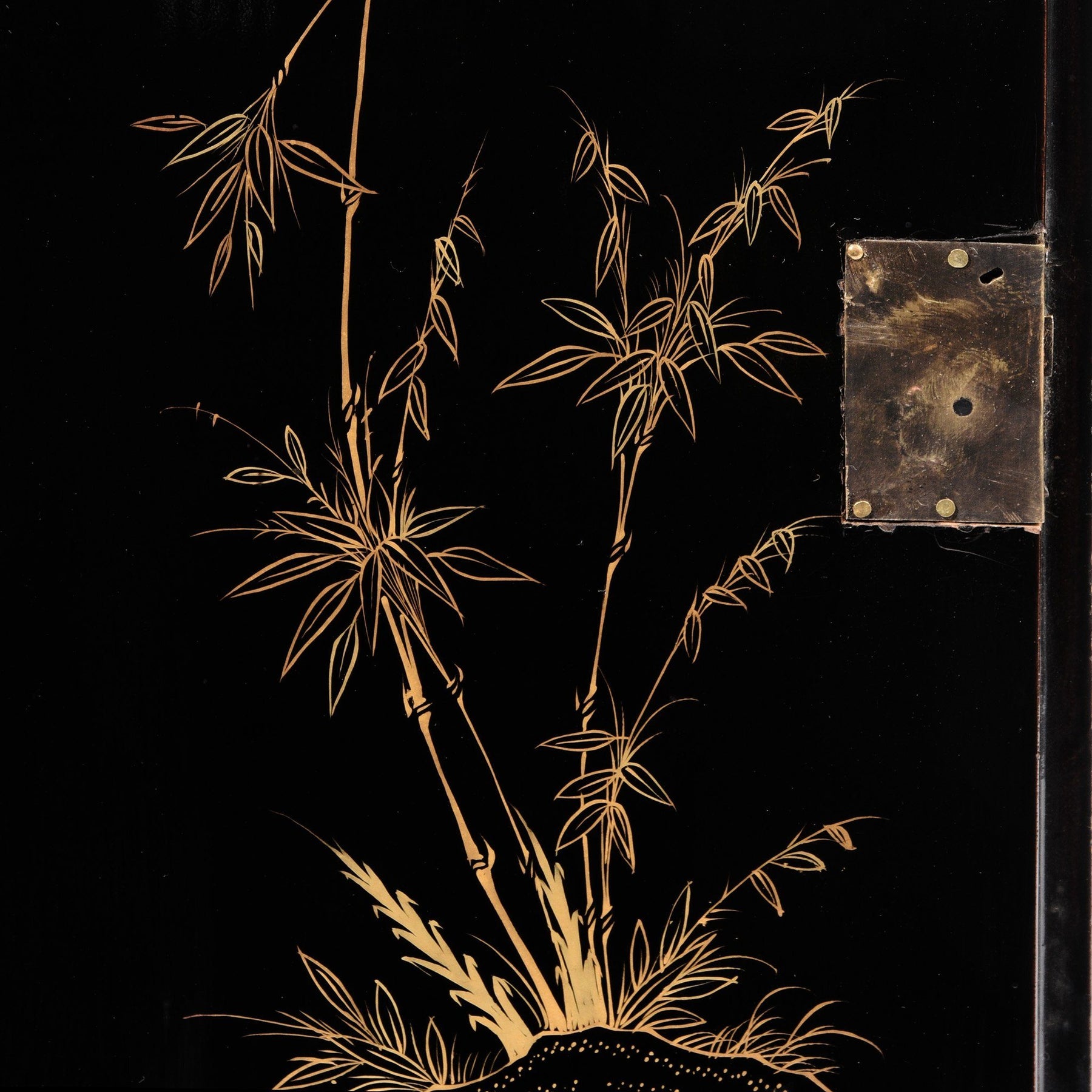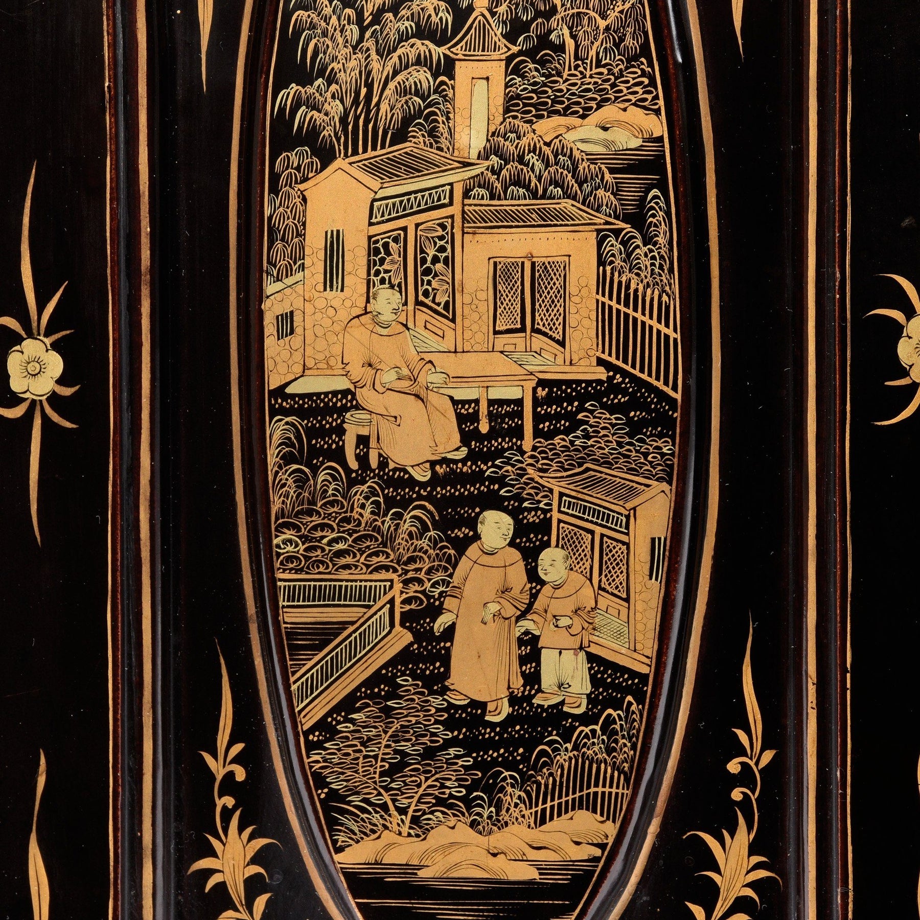 Detail Painting of a Chinese Export Gilt Black Lacquer Jewellery Table Cabinet - Early 19thC | Indigo Antiques