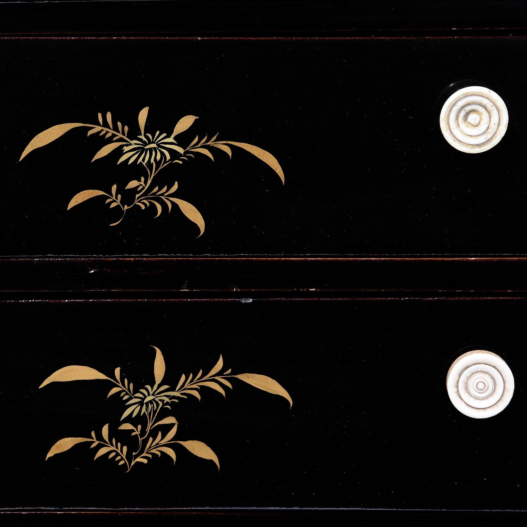 Drawer detail from a Chinese Export Gilt Black Lacquer Jewellery Table Cabinet - Early 19thC | Indigo Antiques