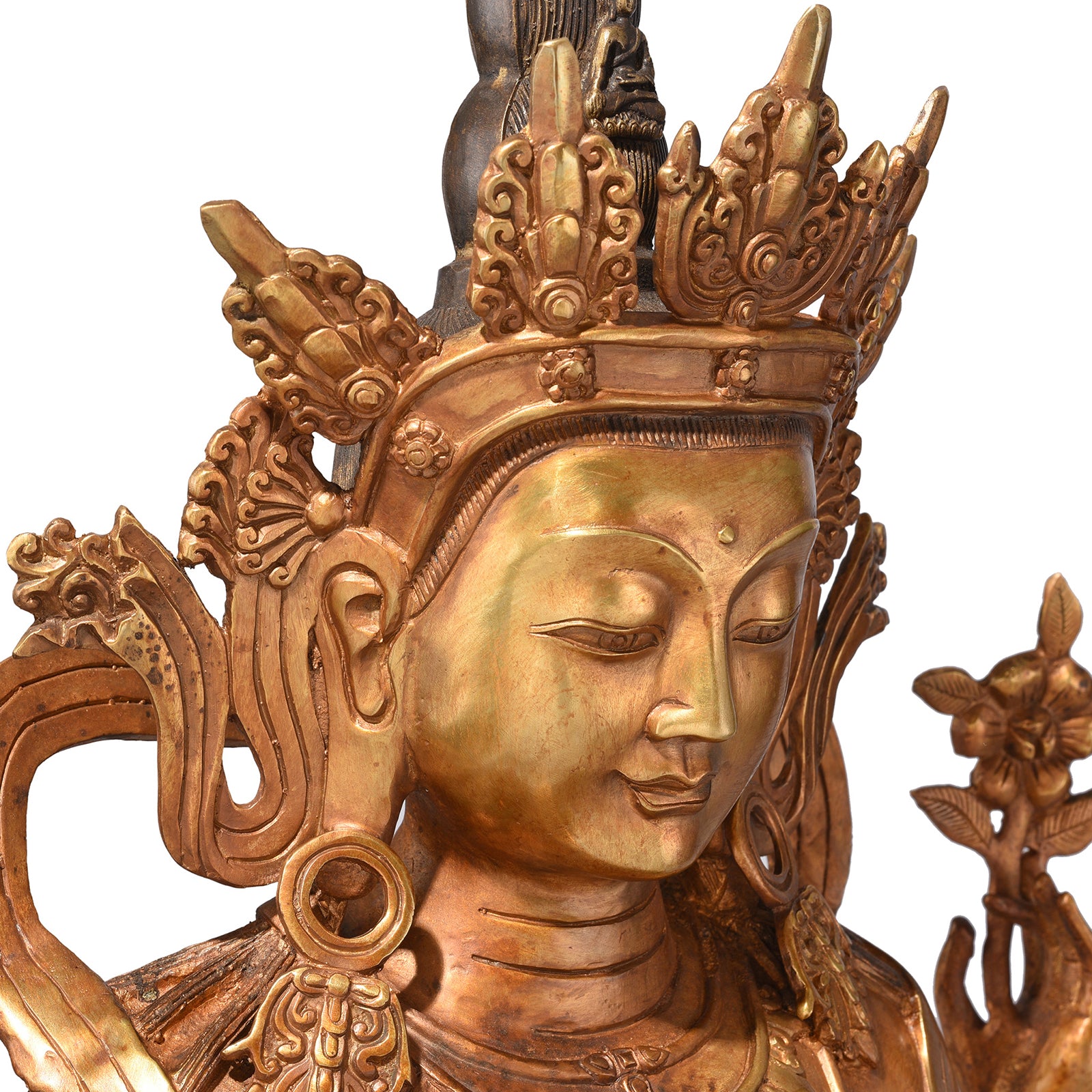 This hand crafted bronze Chenrezig statue is a faithful reproduction of an original Nepalese bronze. Chenrezig, or Avalokiteśvara, is one of the most revered Buddhist deities in Nepal. Chenrezig is a bodhisattva, one with the highest level of enlightenment who remains on Earth to assist the everyday folk.