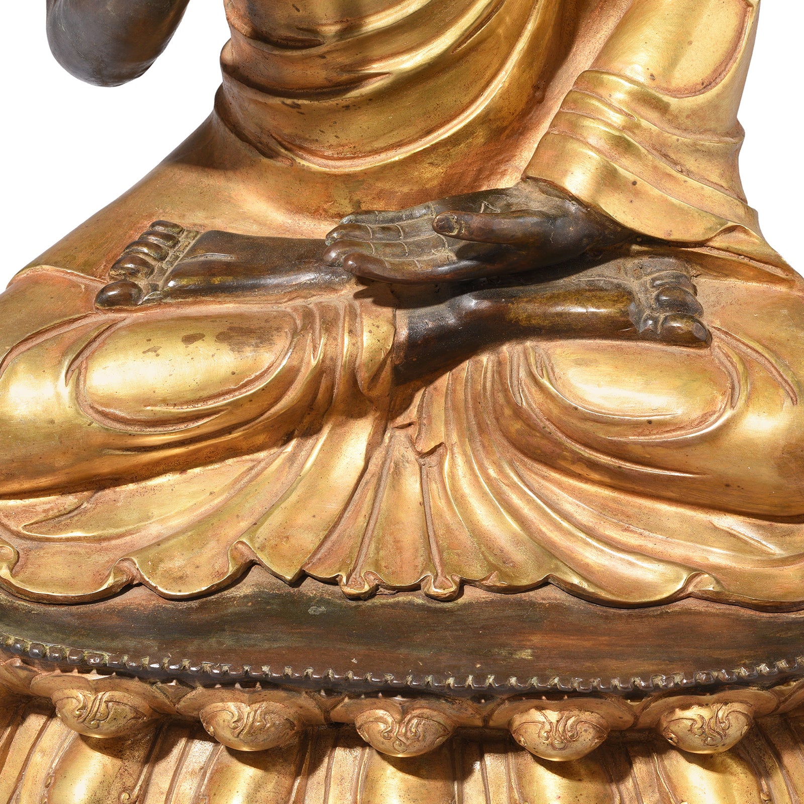 Feet Detail From Gilt Brass Sitting Buddha - Vitarka  Mudra | Indigo Antiques
