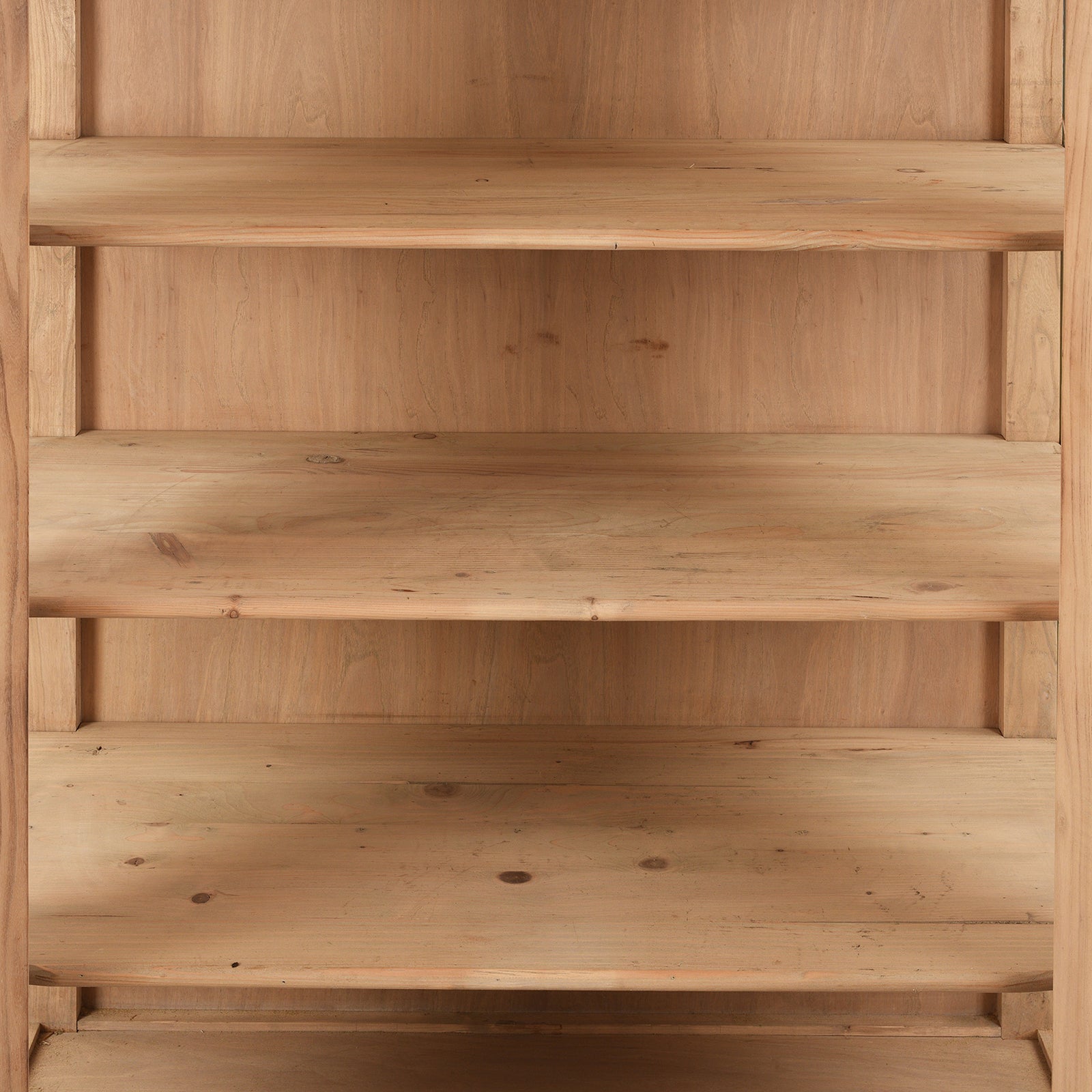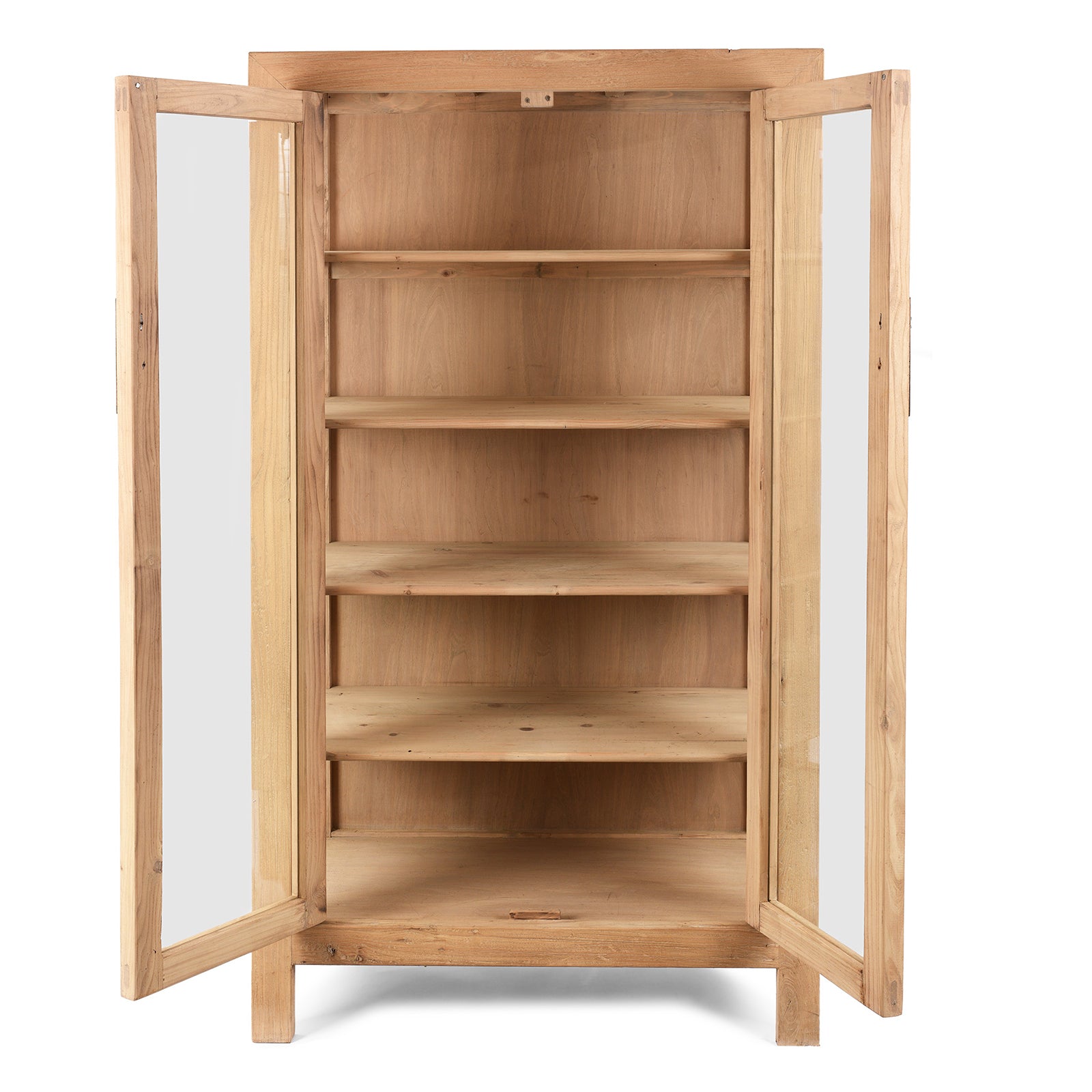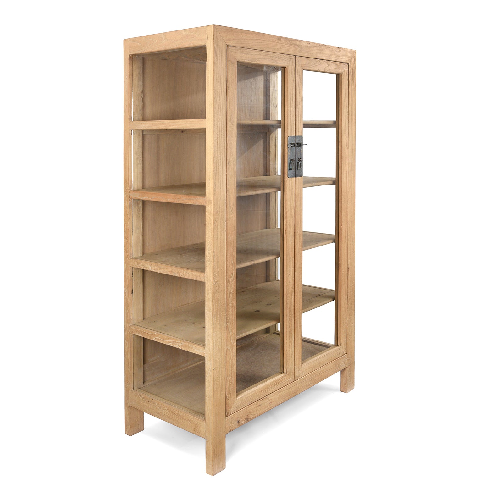 Our stylish and contemporary bleached elm display cabinet comes with premium verdigris brass and is crafted from reclaimed old elm wood salvaged from old Chinese buildings. This narrowly proportioned glazed cabinet is the perfect size for a smaller room or office and has 5 shelves for maximum storage.