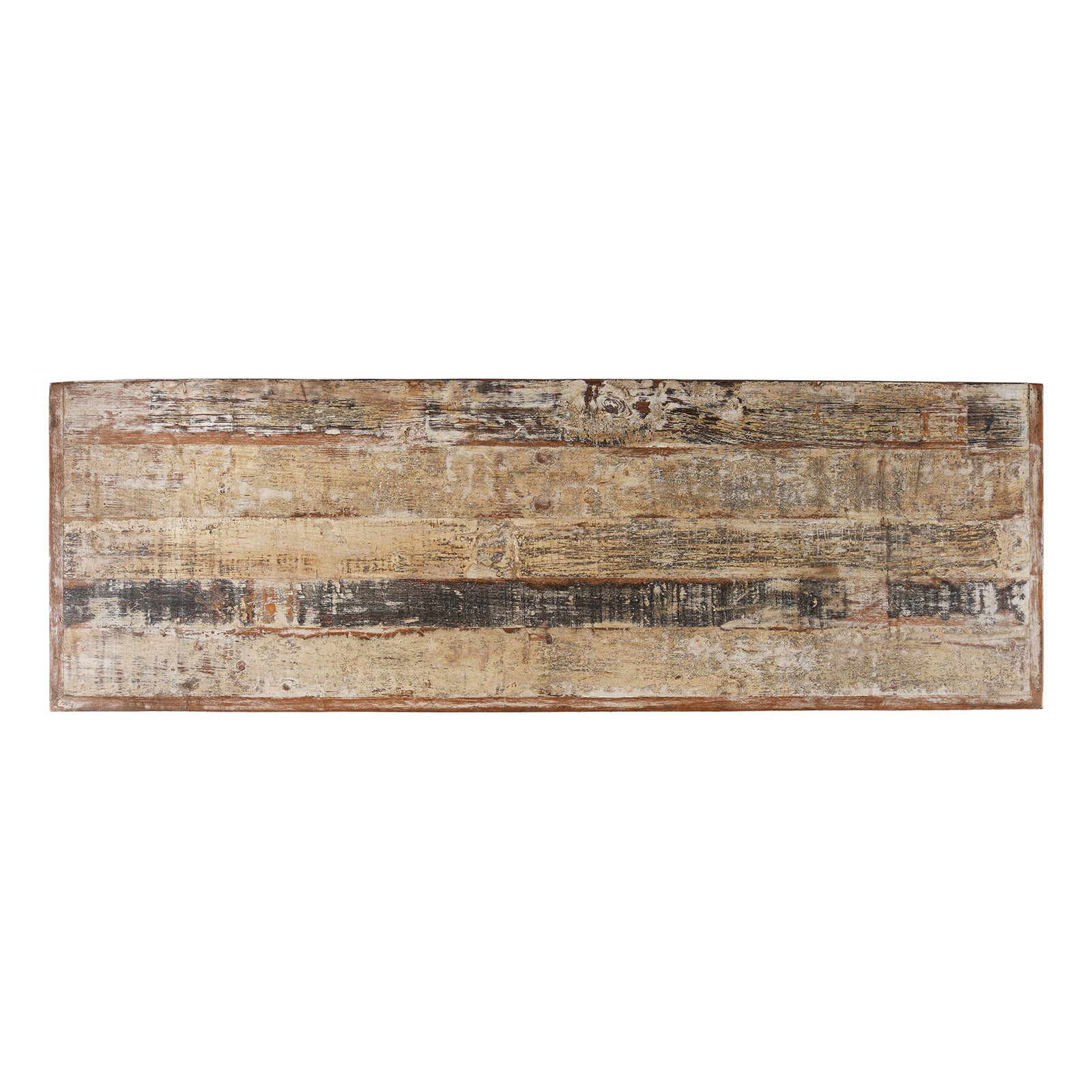 This beautifully weathered glazed display cabinet is crafted from reclaimed teakwood salvaged from historic buildings in Northern India. Though newly made, it retains a strong sense of heritage thanks to its distressed painted finish, aged teak grain, and vintage-inspired form.