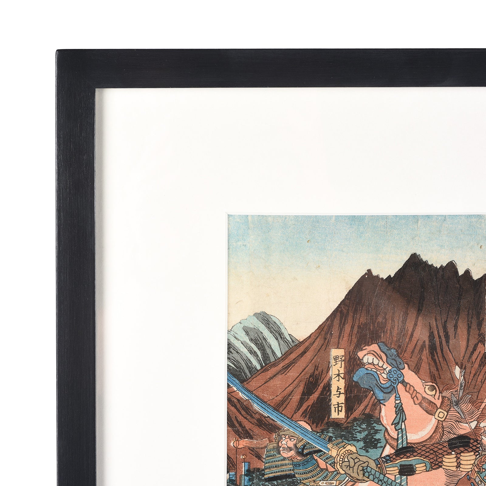 Rider Detail From Antique Framed Japanese Woodblock Print by Utagawa Yoshikazu - 19thC