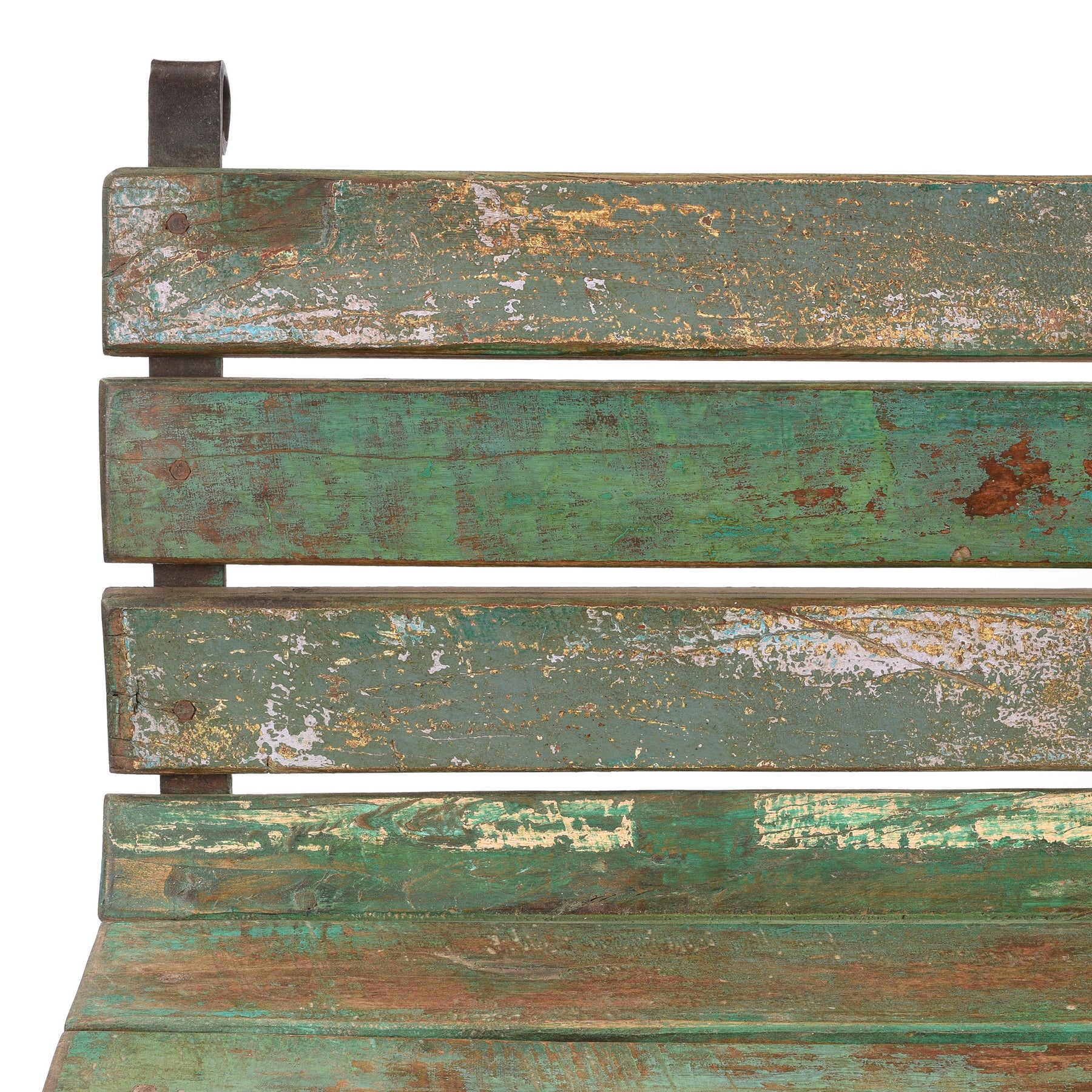 Slat Detail From Vintage Green Painted Slatted Teak Bench | Indigo Antiques