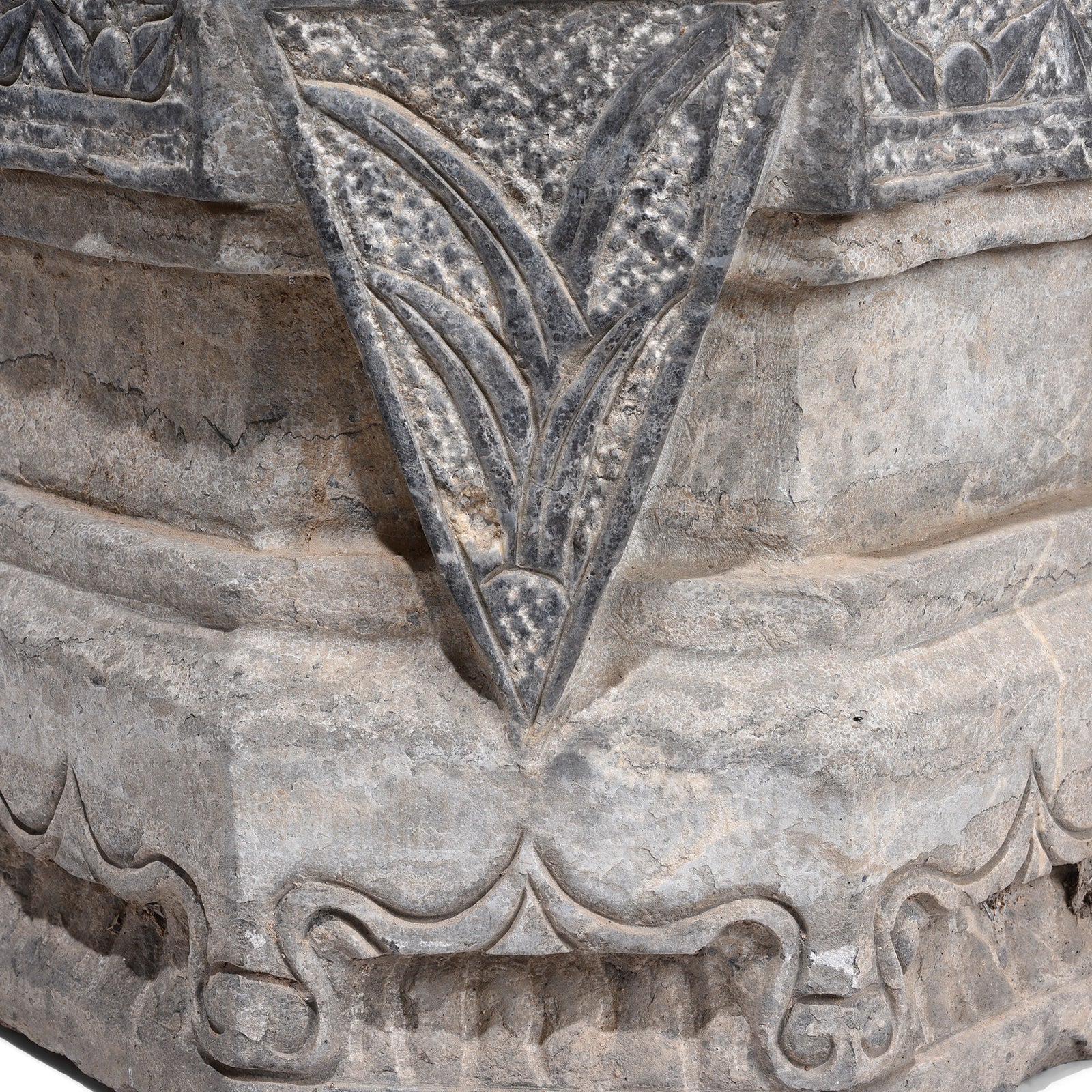 Though newly made, the stone has been carefully finished to replicate the weathered character of antique originals. Designed for outdoor durability, it is frost-hardy and stable€”ideal for use as a pedestal for urns or sculptures, a low garden seat, or simply as a decorative architectural feature in a courtyard or landscape.