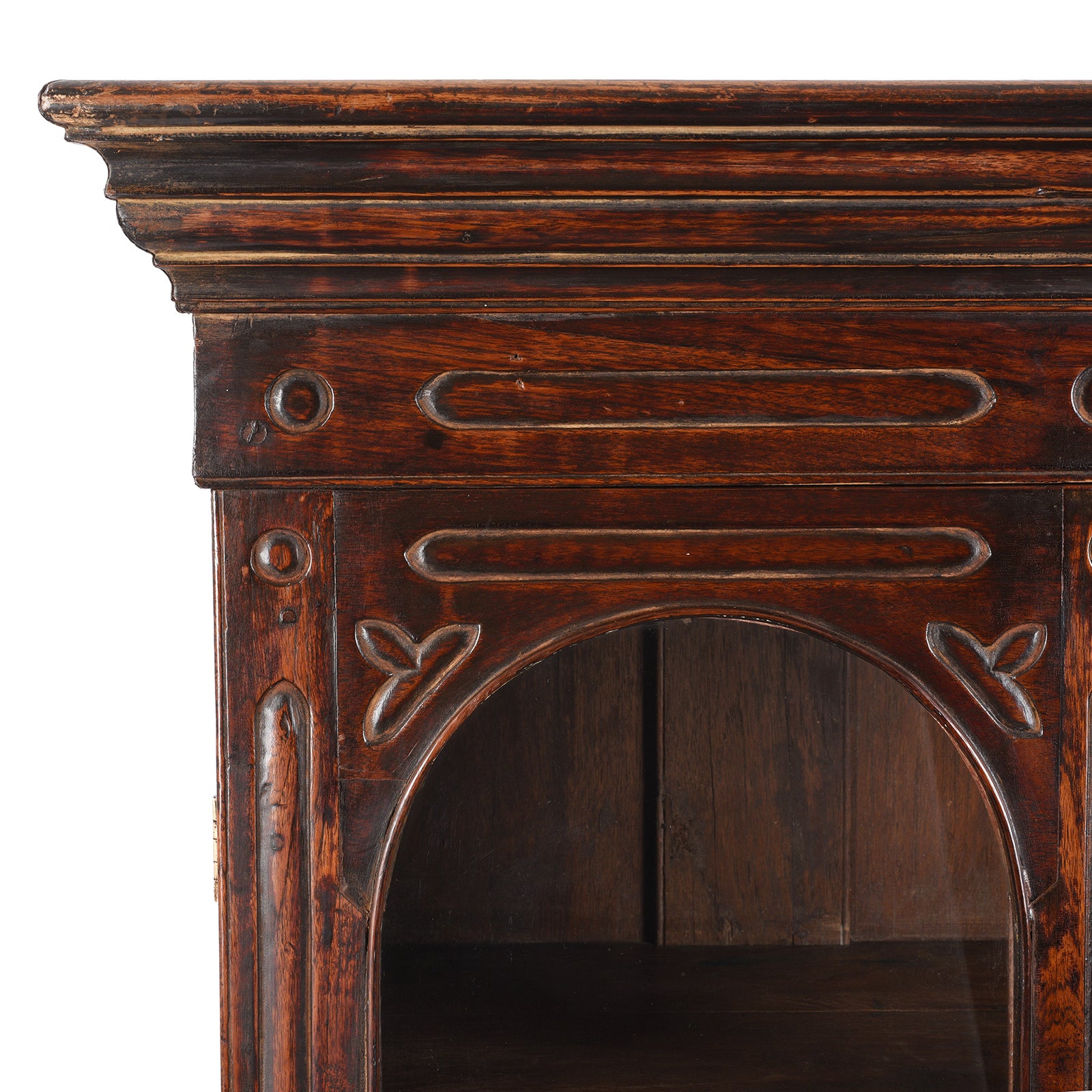 This antique 19th century Indian almirah cabinet with glazed panel doors and sunburst motifs is an excellent example of the Indo-Portuguese blend of styles and is constructed from solid teak wood.