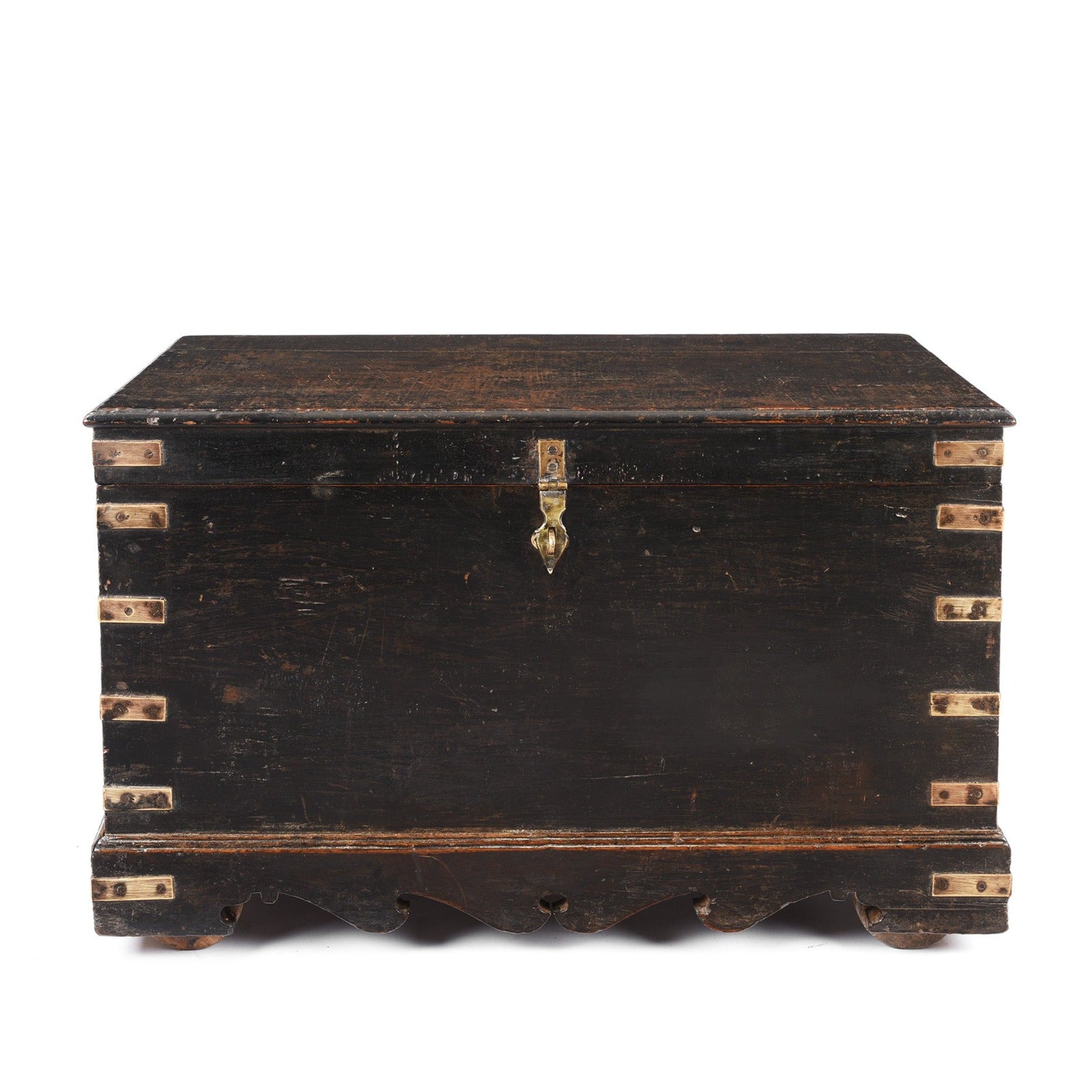 Antique Brass Bound Black Teak Military Chest | Indigo Antiques