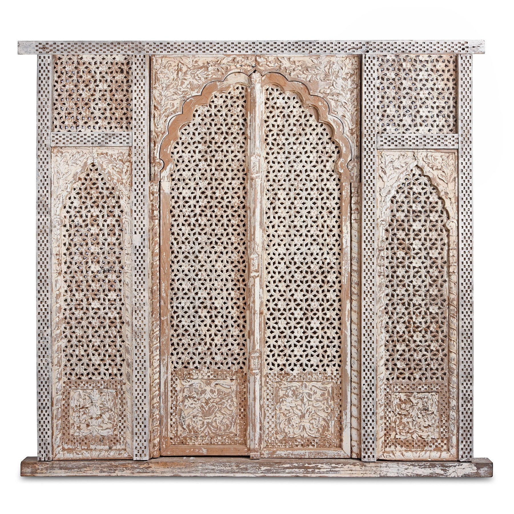 White Painted & Carved Indian Jali Purdah Screen - Mughal Style | Indigo Oriental Antiques