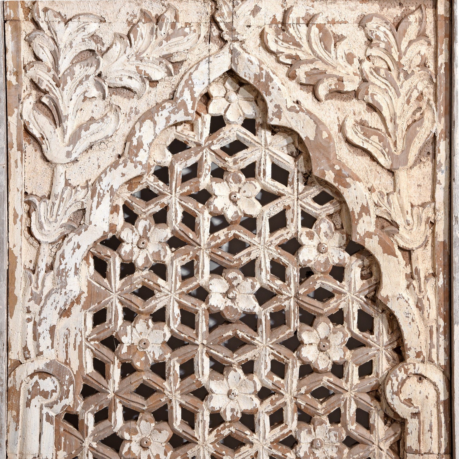White Painted & Carved Floral Indian Jali Purdah Screen - Mughal Style | Indigo Oriental Antiques