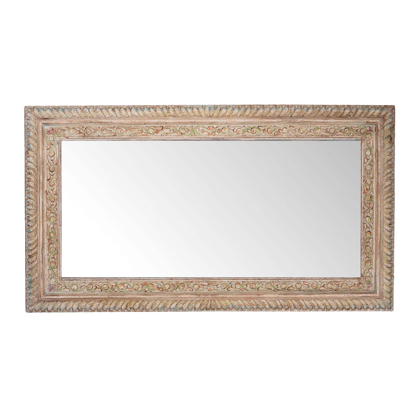Hand Carved Indian Mango Wood Mirror With Floral Carving And Painted Detailing