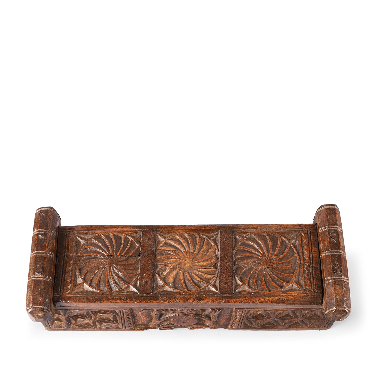Top Down VIew Of Antique Carved Teak Ganesh Harpa Box From Banswara | Indigo Antiques