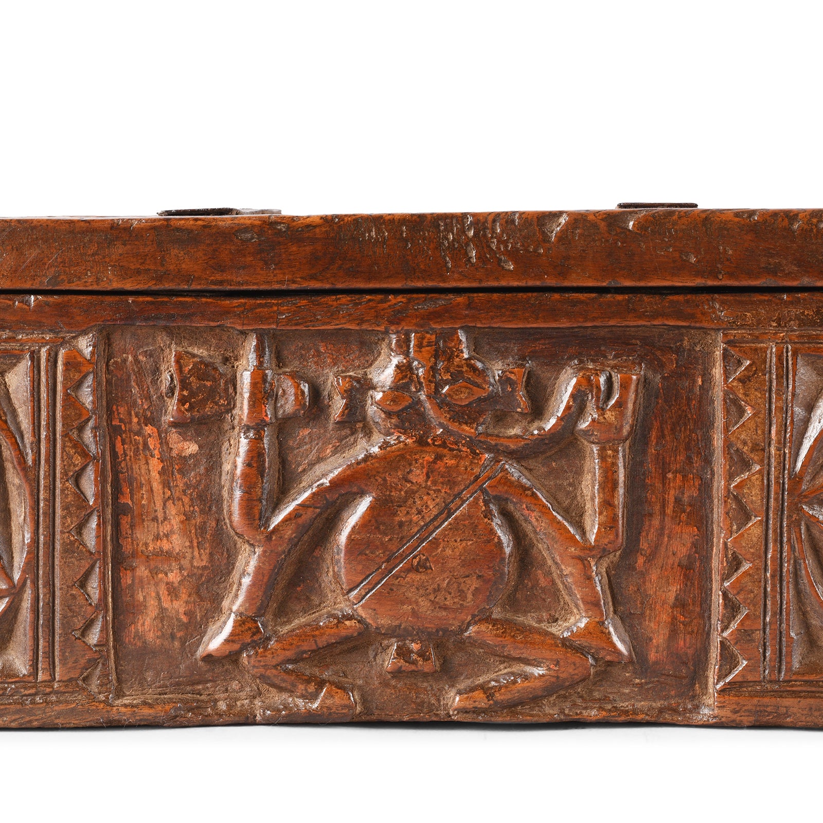 Carving Detail From Antique Carved Teak Ganesh Harpa Box From Banswara | Indigo Antiques
