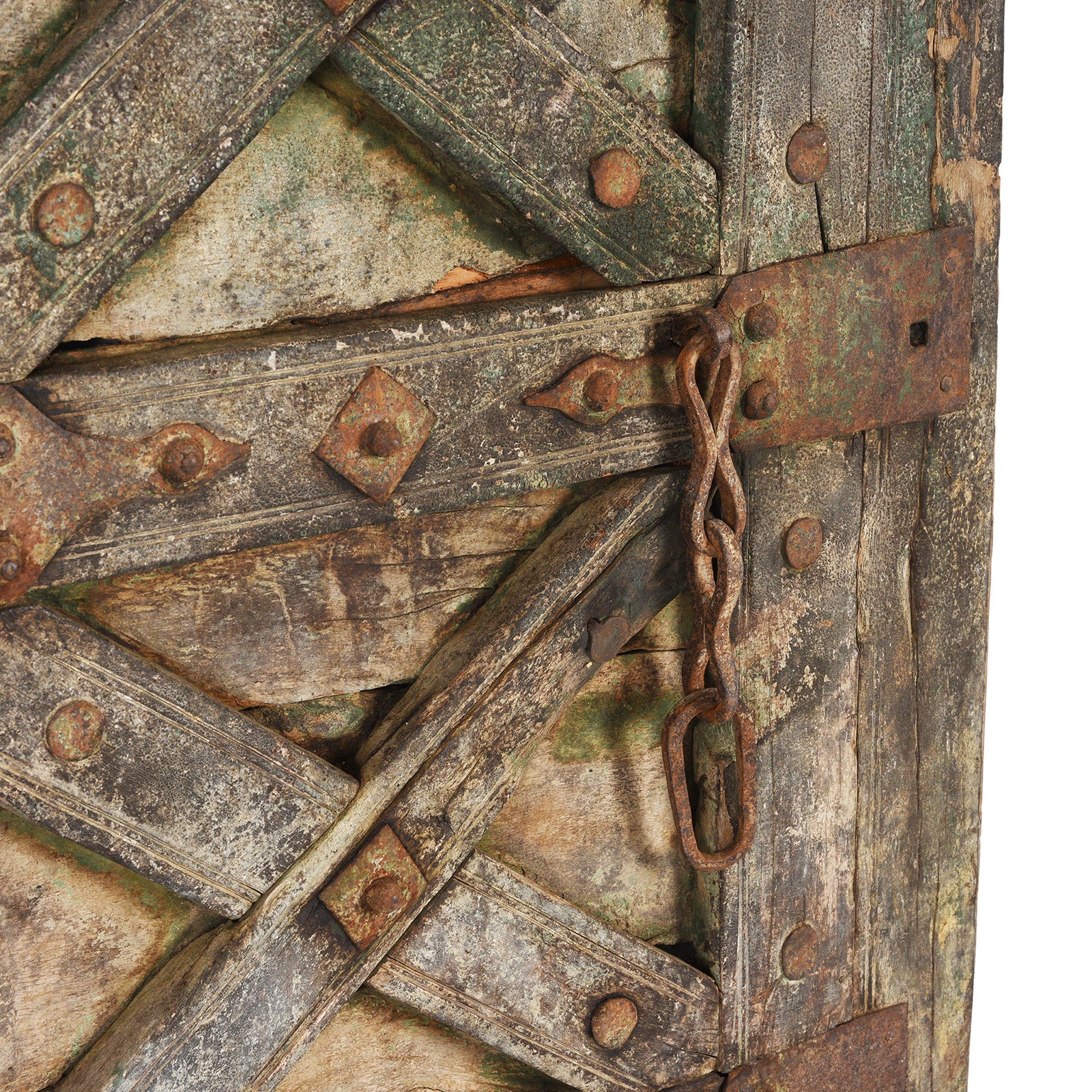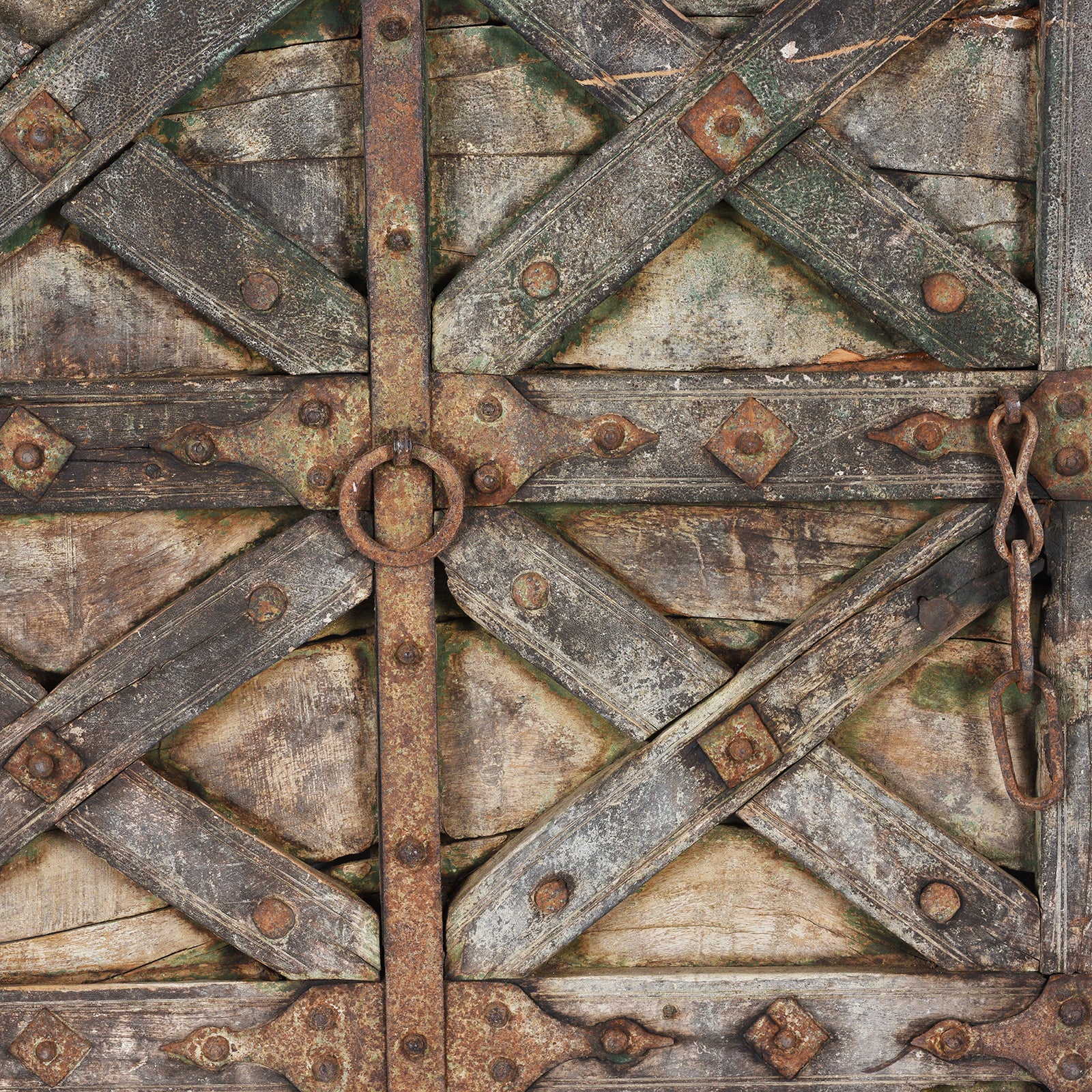 This stick door dates to ninteenth century India. They were used by the desert dwelling tribes of Western Rajasthan in their buildings which were made of mud and clay.
