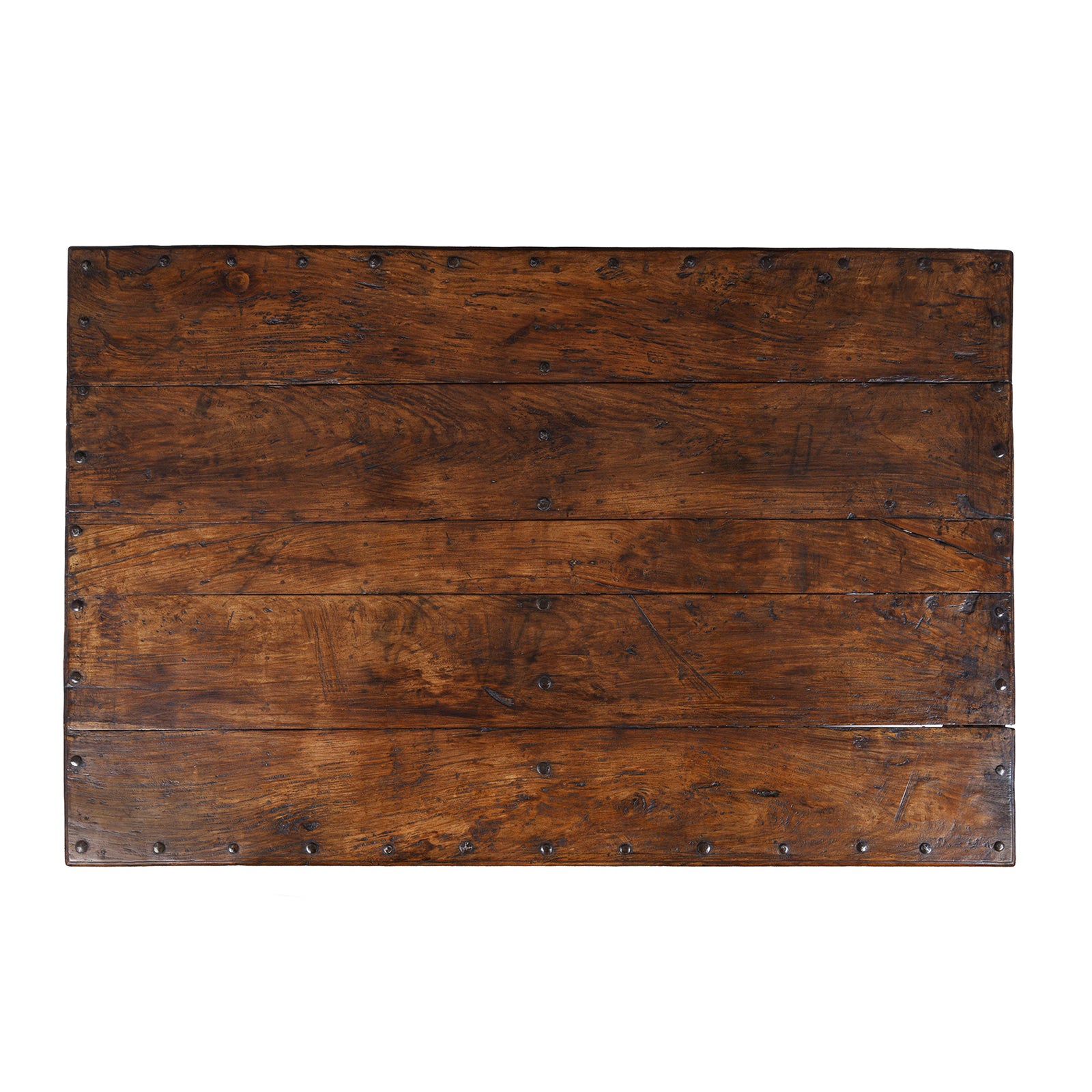 Constructed from roheda wood—a prized Rajasthan timber often described as a variety of teak and recognised as the national wood of Rajasthan—the piece has a wonderfully dense, tactile surface, with visible plank construction, studded detailing, and a deep honeyed tone built up through decades of use. A dramatic statement in any interior, it makes a superb rustic centrepiece for a living room, conservatory, or summer house.