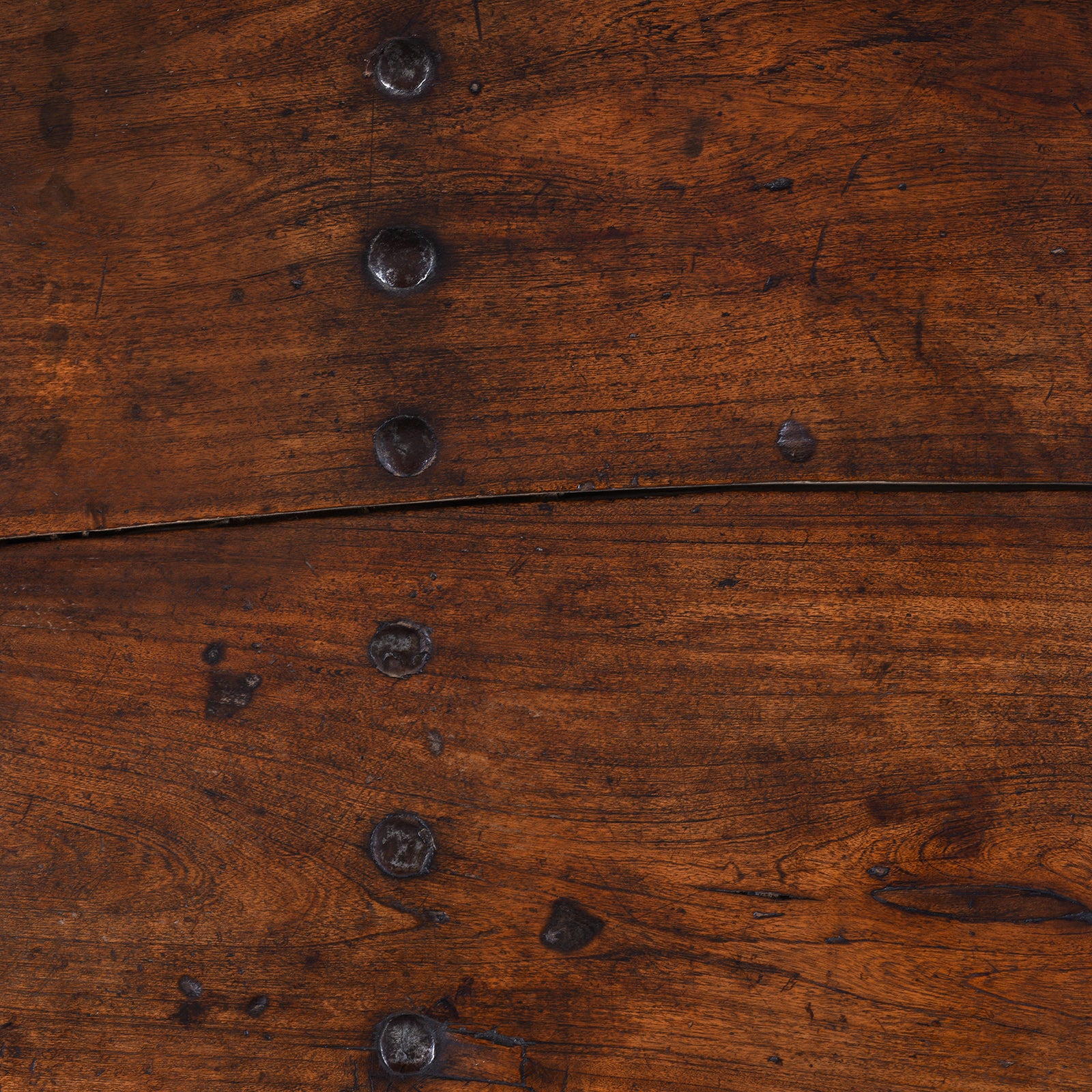 The top is made from thick planks bound with hand-forged iron straps, with time-worn patches and repairs that tell the story of its long life. Each imperfection adds to its charm and authenticity. Supported by turned legs and iron stretchers, this solid piece embodies the rugged elegance of Shekhawati craftsmanship and would make a striking rustic centrepiece in any living room, conservatory, or summer house.