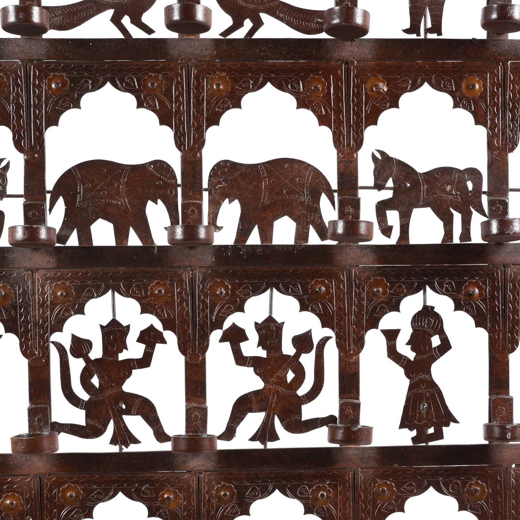 Made from wrought iron, a toran is a Bastar tribal price from the Bastar people of Madya Pradesh. They were made as oil lamps and often depicted hunters and animals. These pieces are faithful reproductions of original pieces.