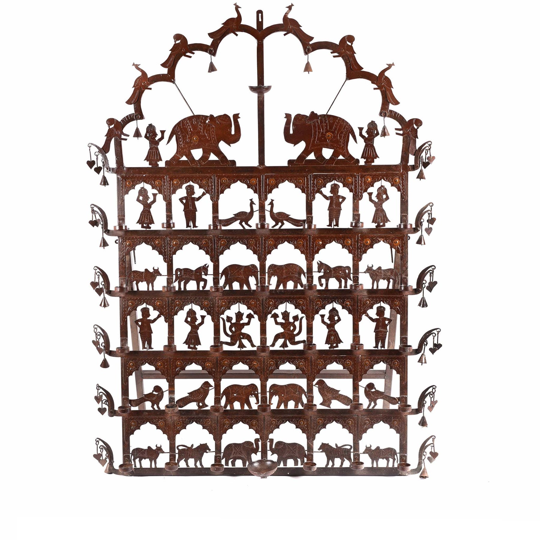 Angled View Of Indian Tribal "Toran" Diwali Lamp | Indigo Antiques
