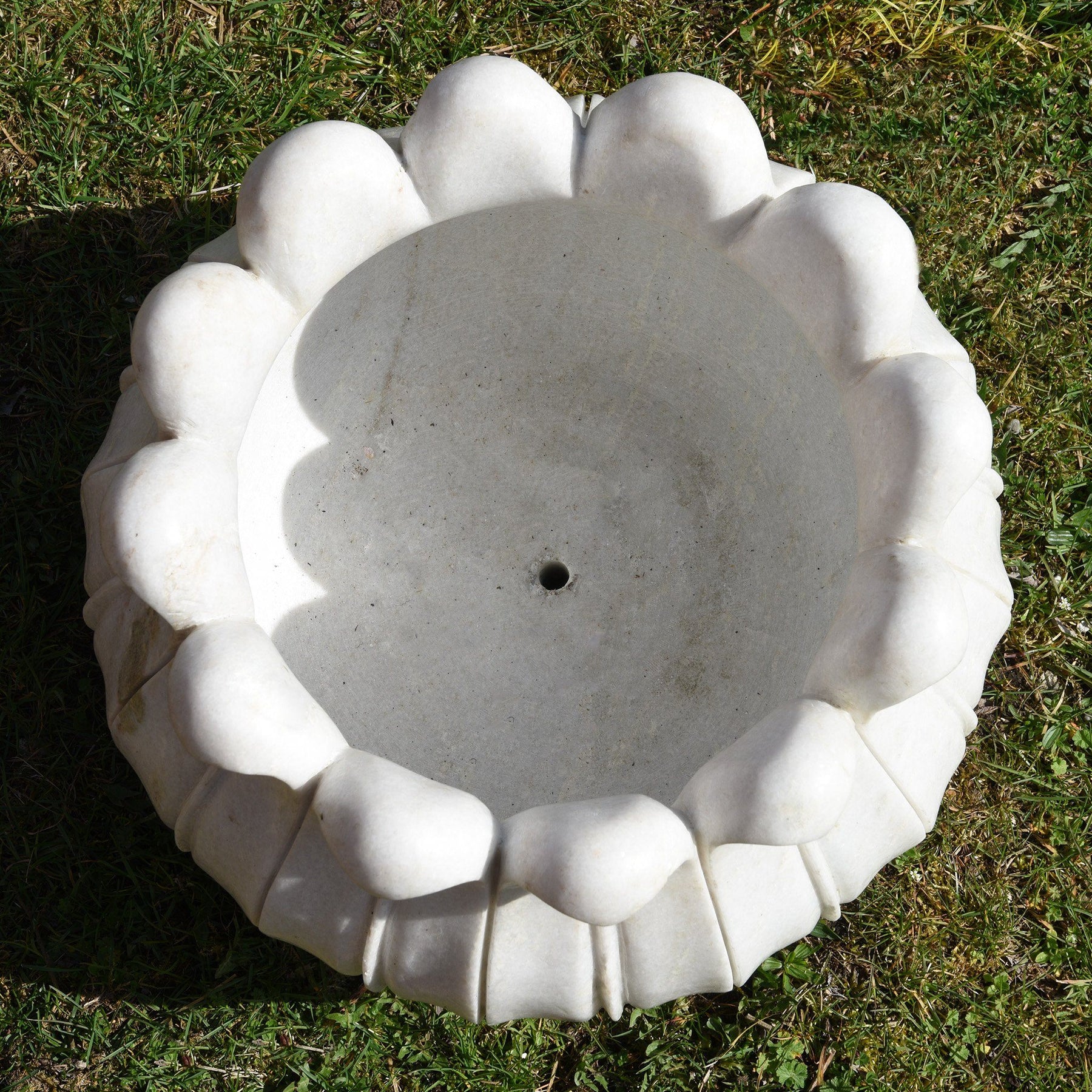 These beautifully carved Makrana marble planters are carved in the Mughal style in the form of a lotus bud. They're hand carved and finished by skilled craftspeople in Udaipur using traditional methods to ensure they are frost hardy and suitable for the variable English weather.