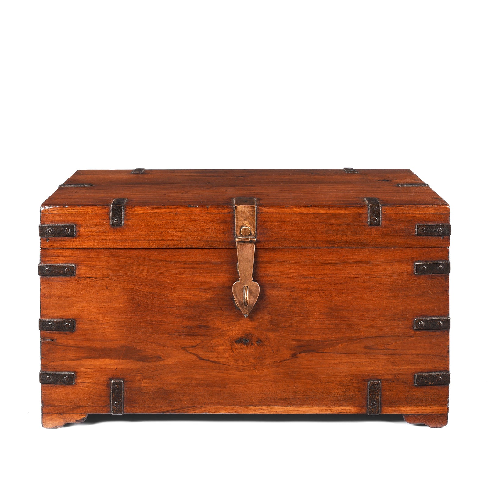 Angled VIew Of Antique Iron Bound Teak Military Chest From Rajasthan | Indigo Antiques
