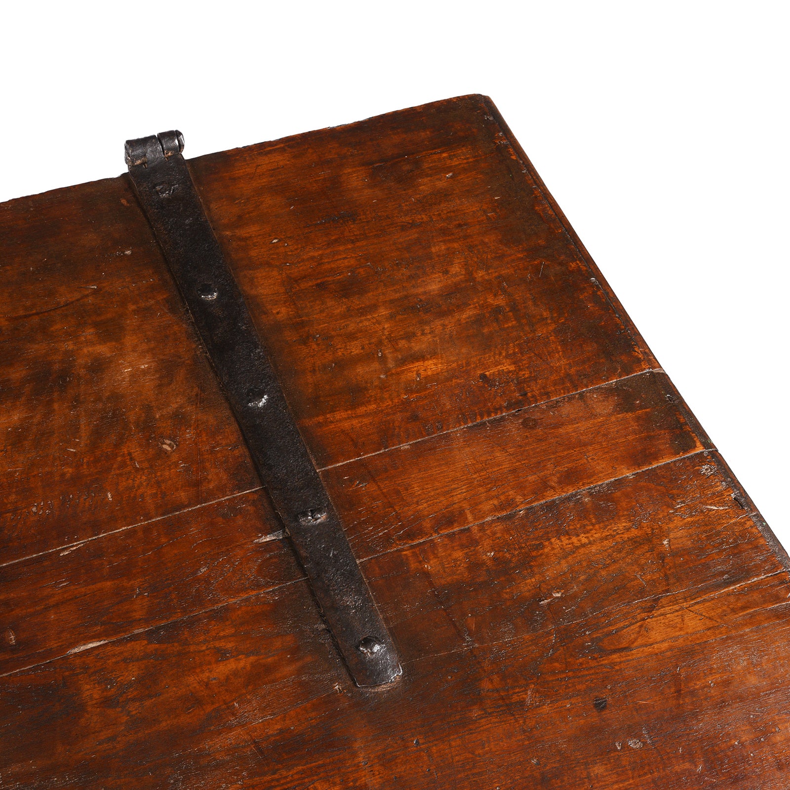 Top Down View Of Antique Indian Iron Bound Teak Chest From Gujarat | Indigo Antiques