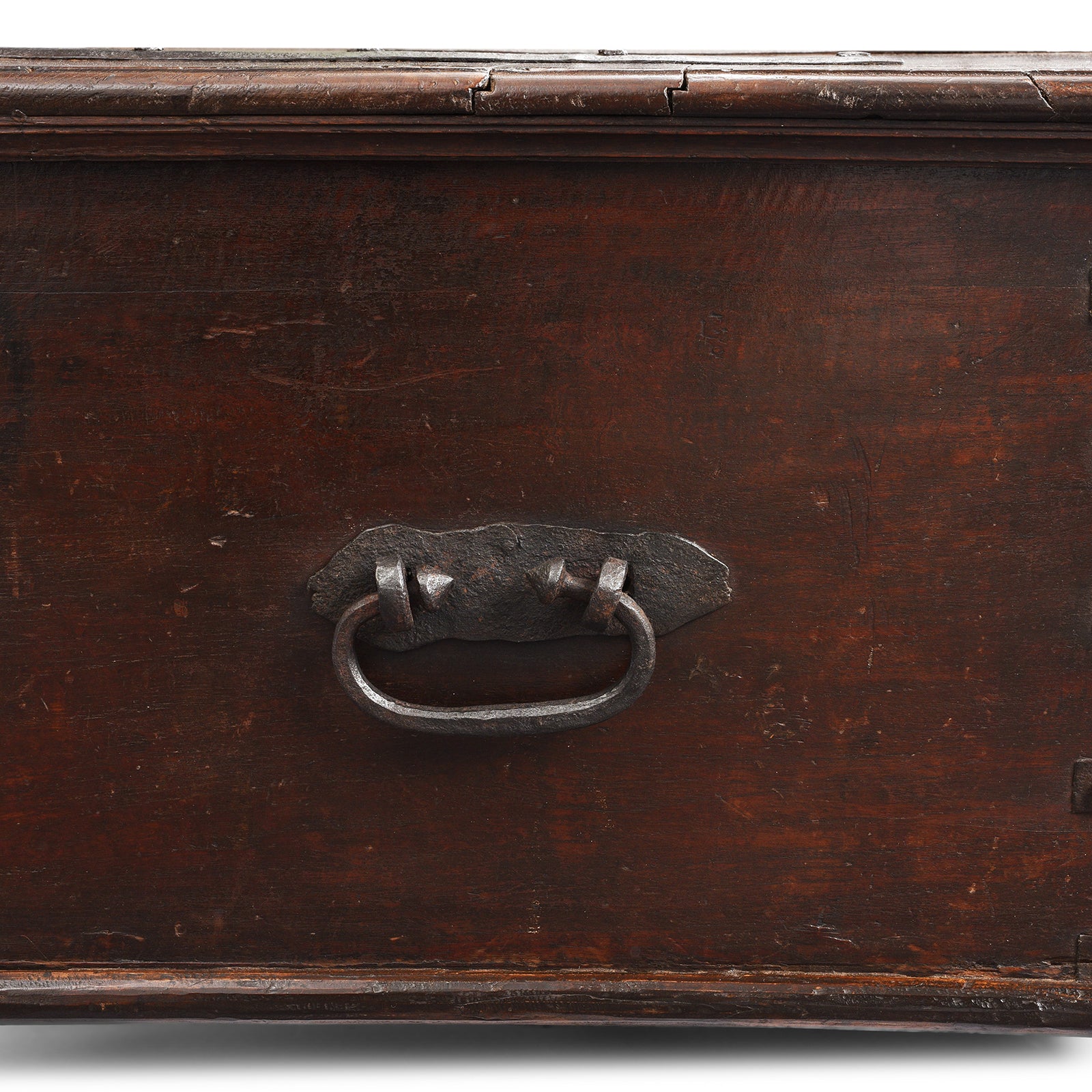 This beautifully patinated iron-bound chest is from Gujarat and dates to the early 19th century. It is constructed from teak wood. Most likely it was custom made for a wealthy family to stash away dowry, family treasures, or cash from the prying eyes of extended family members.