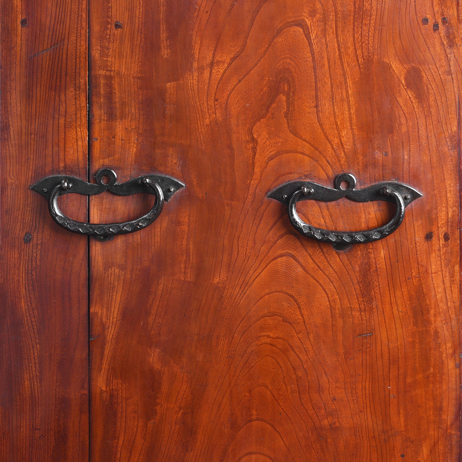 It should be noted that as is often the case with these red elm tansu chests, the drawer fronts have some bowing which has been partially mitigated in our workshop.