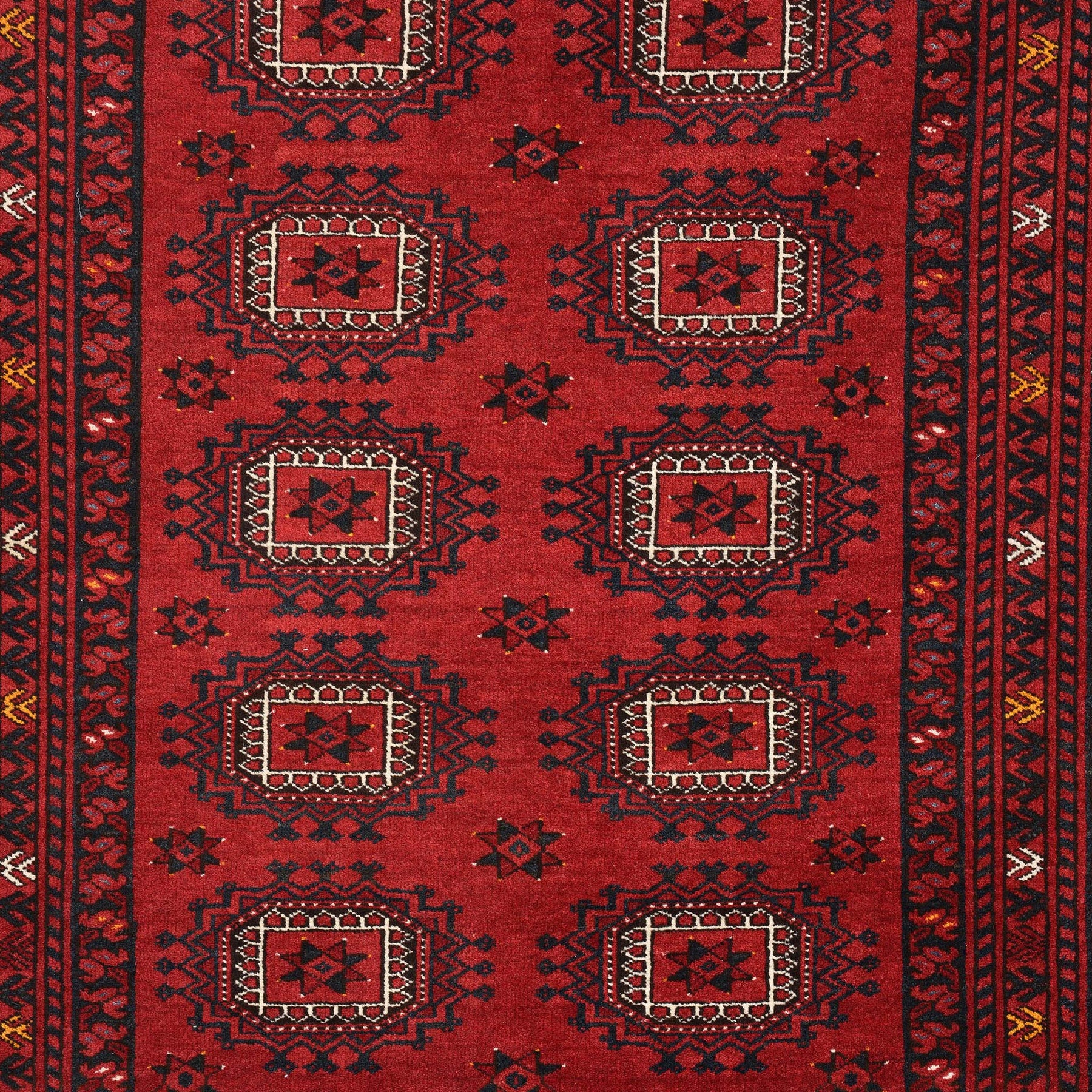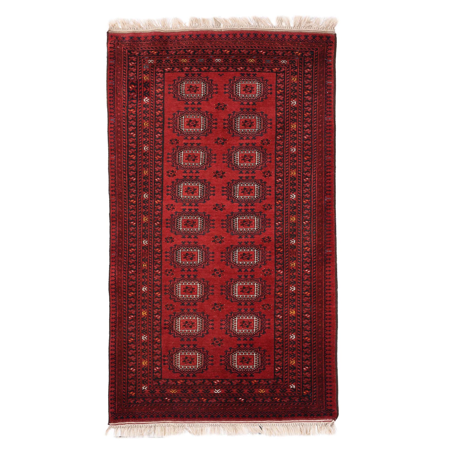 Kizil Ayak rugs take their name from the Kizil Ayak tribe who inhabit Turkmanistan who originally created them as dowry gifts used in Turkmen wedding ceremonies. Produced from the 19thC onwards, their deep rich reds and blues with repeating floral and geometric patterns have proven a firm favourite in the antique, collector and consumer rug markets of Europe and America.