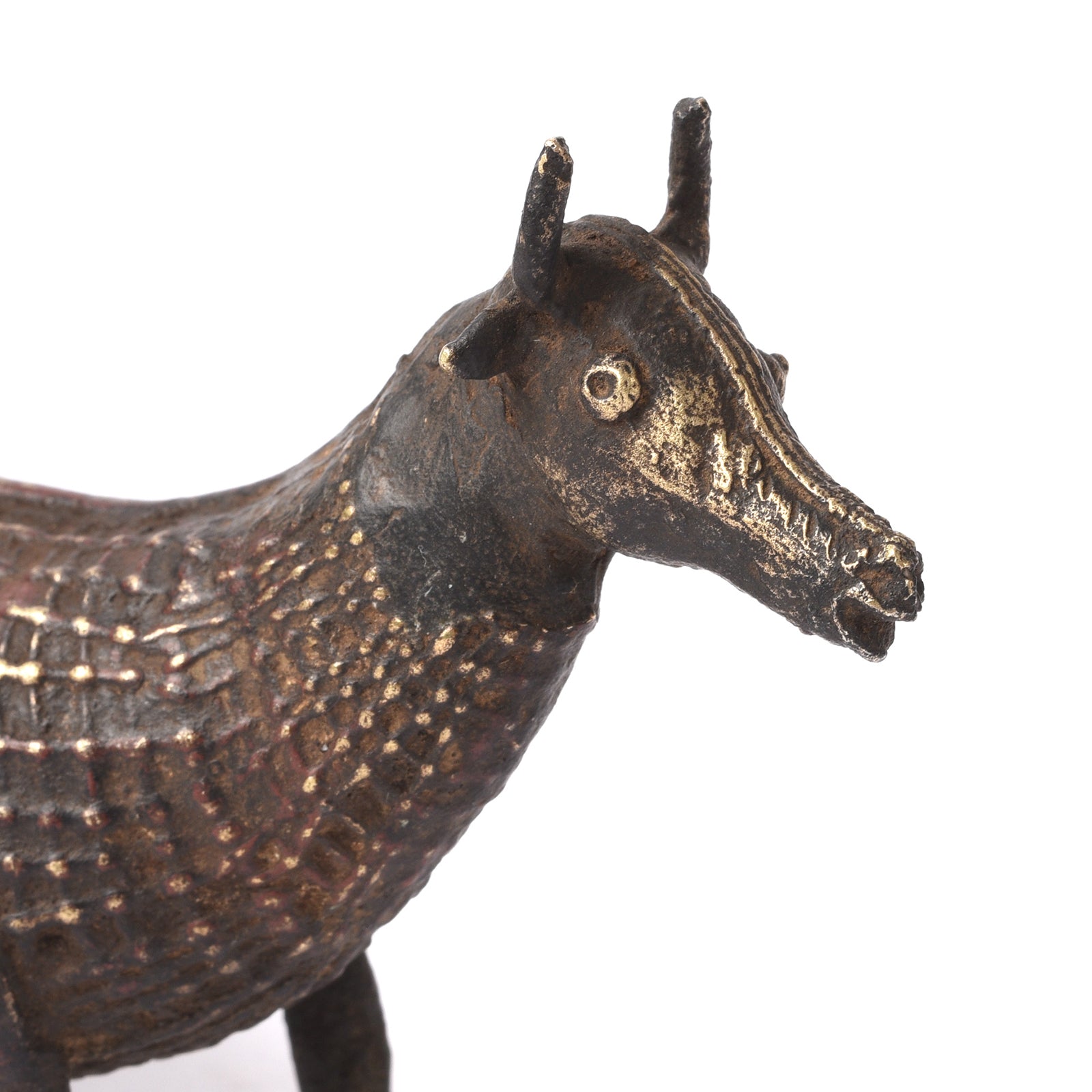 This tribal brass cast zebu, or humped Indian bull would have been an important part of daily ritual for a Kondh (also spelt Khond or Gond) family. These statues are sometimes referred to as water buffalo and are from the Kandhamal district of Orissa (modern-day Odisha).
