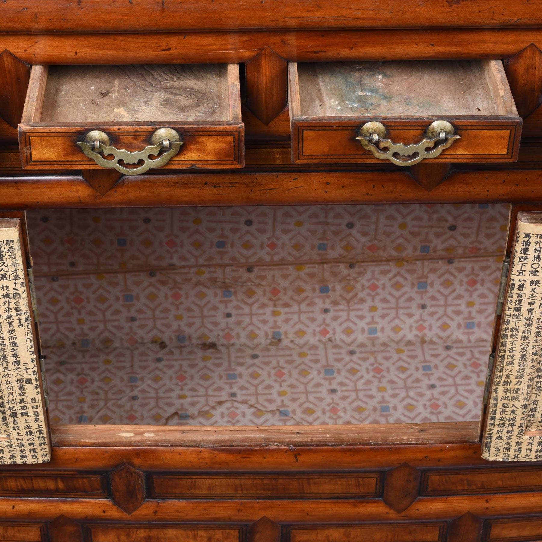 Door Panel Inside Of Burr Elm Korean Morijang Side Cabinet - Early 20thC | Indigo Antiques