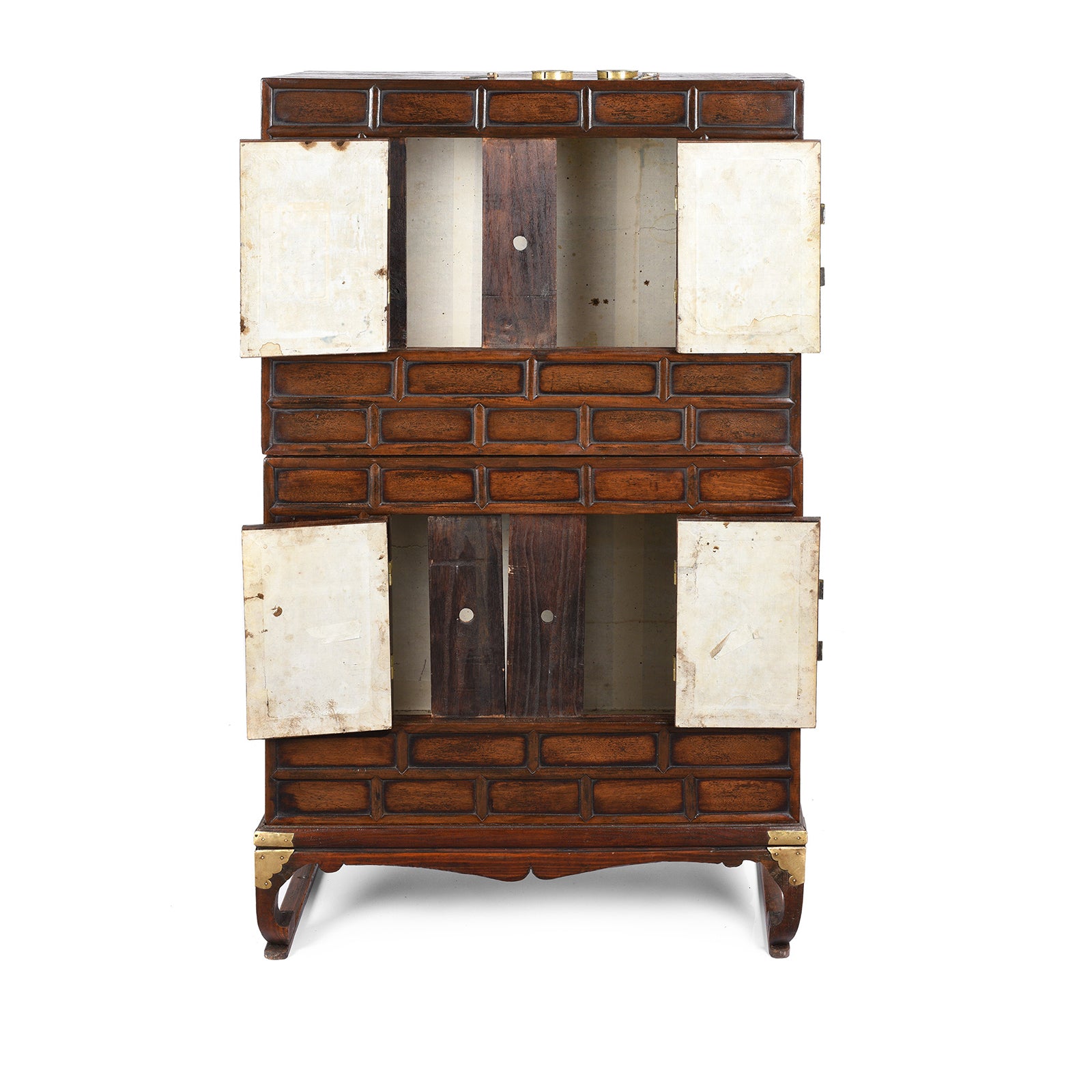 Open Doors View Of Korean Burr Elm cabinet - 19thC | Indigo Antiques