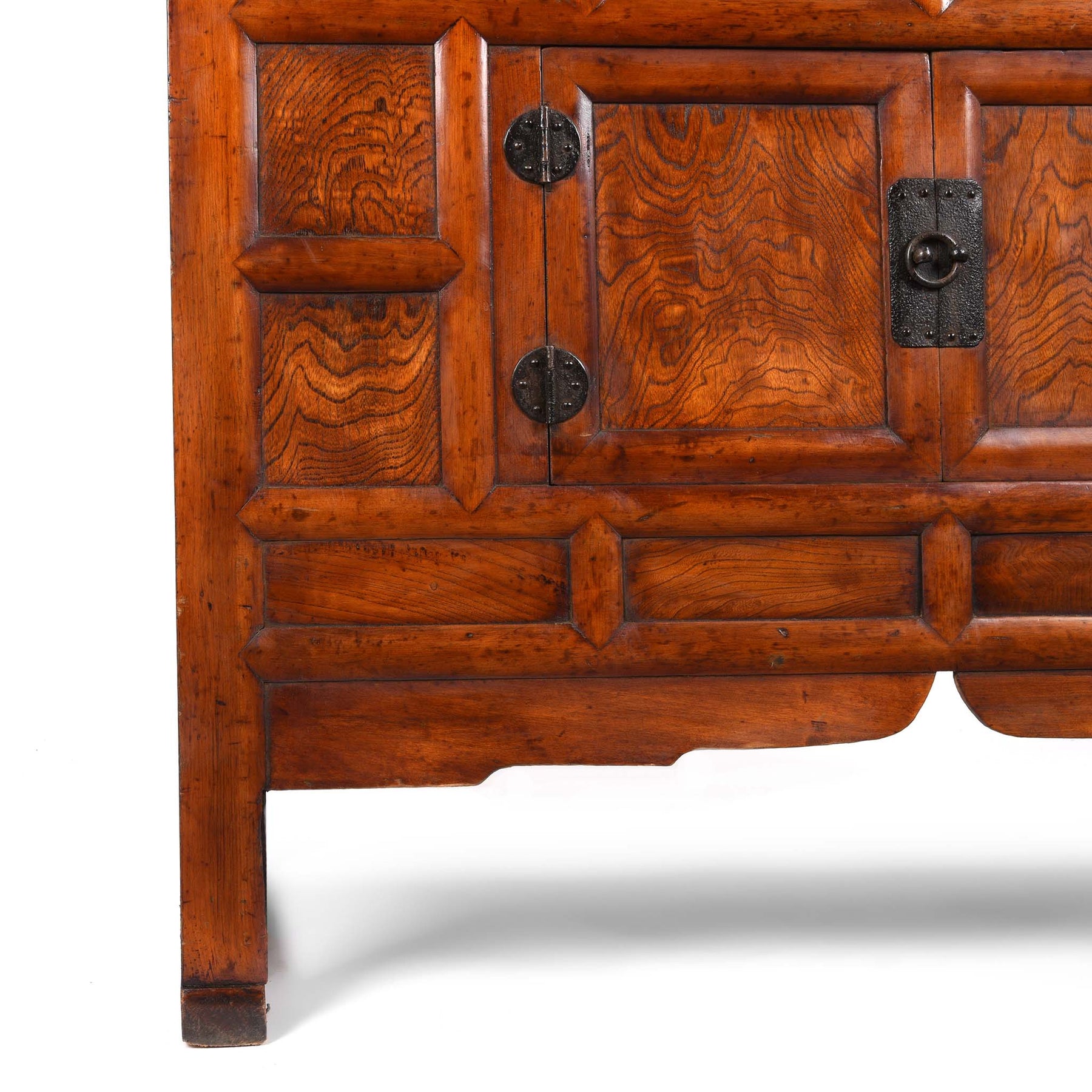 This beautiful cabinet gets the name 'kitchen cabinet' from it's original intended use of being a kitchen storage unit. The classic Korean design is complemented by red elm with it's unique grain structure. It's lightweight for it's size and with the top being completely detachable it's a very versatile piece of furniture.