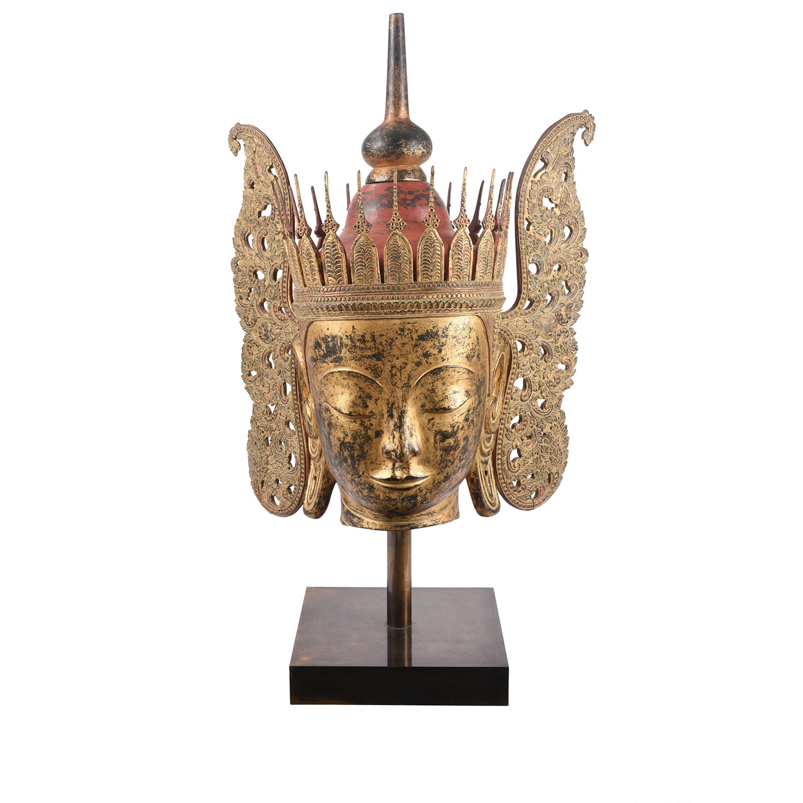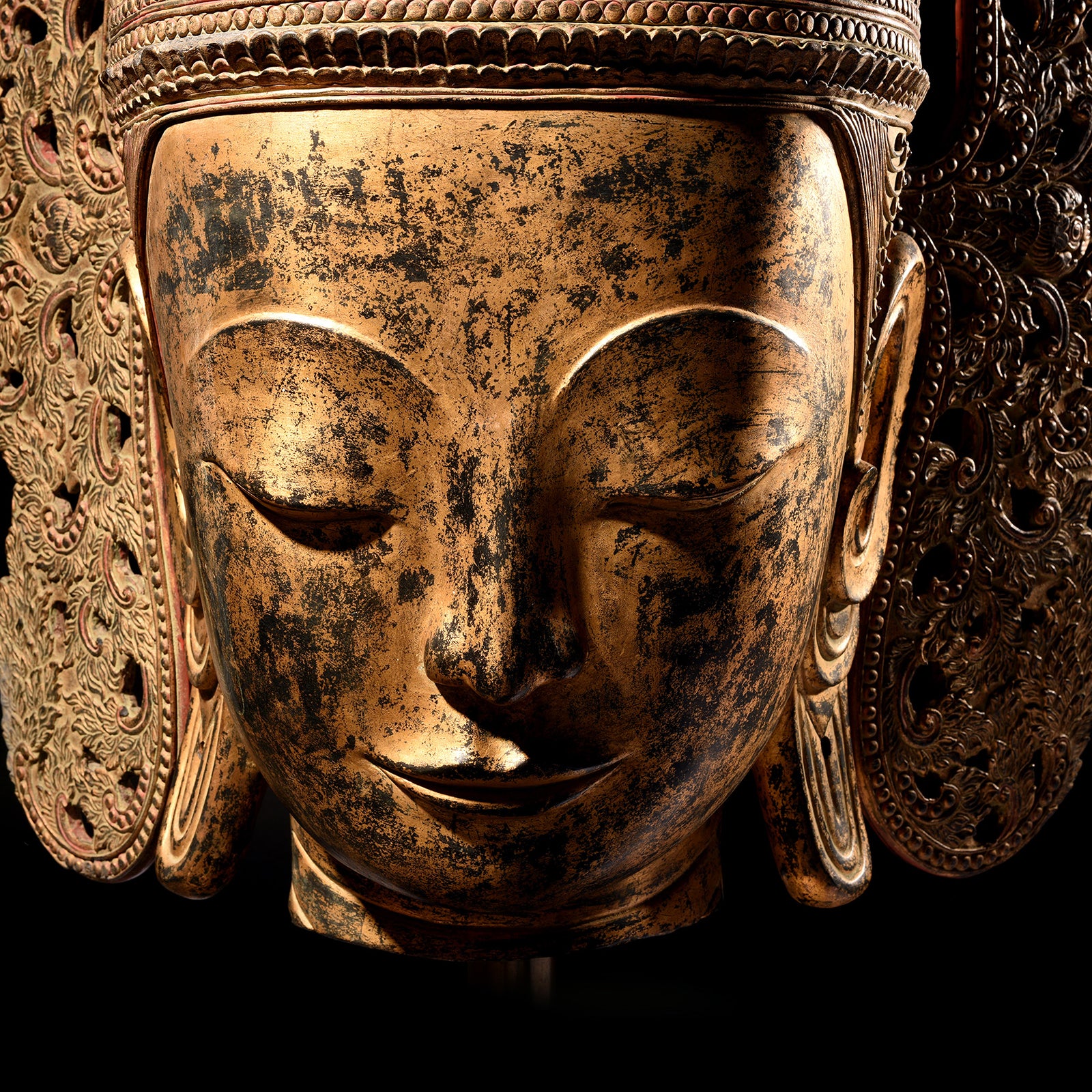 Antique Large Gilt Burmese Shan Buddha Head - Ca 1940 | Indigo Antiques