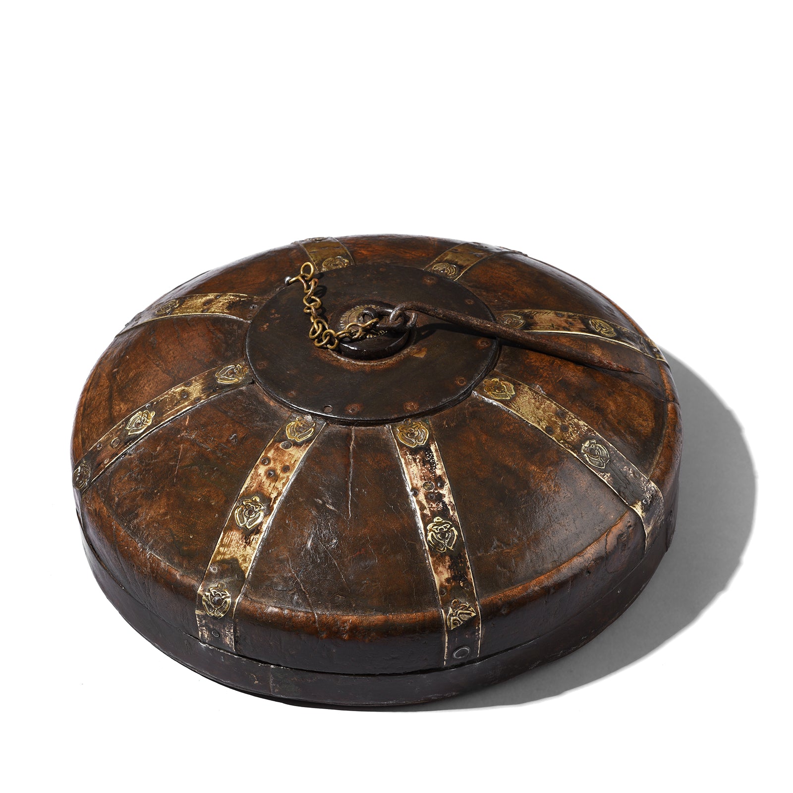 This is an excellent example of a Northern Indian tobacco box dating to the 18th century. These boxes are also called opium boxes. This particular box comes complete with its original iron scraper for accessing the dregs. Opium boxes were owned by wealthy Marwari merchants and caravan traders across Rajasthan. Opium consumption in Rajasthan would have been commonplace amongst wealthier Rajasthanis and these pots would have been used in conjunction with opium kharals for grinding opium before mixing with water, and wrought iron opium retorts for straining the opium. The opium water is then drunk rather than smoked.