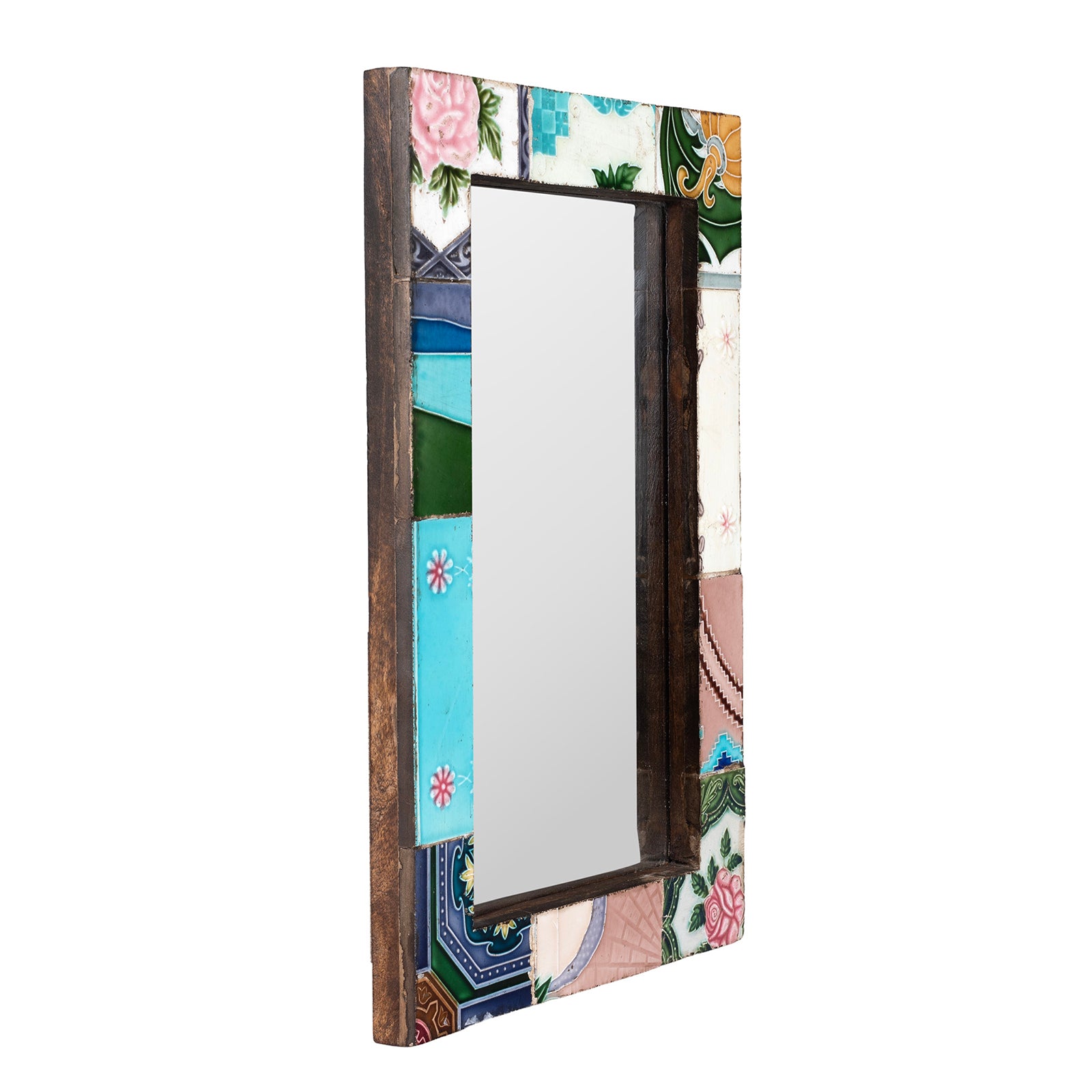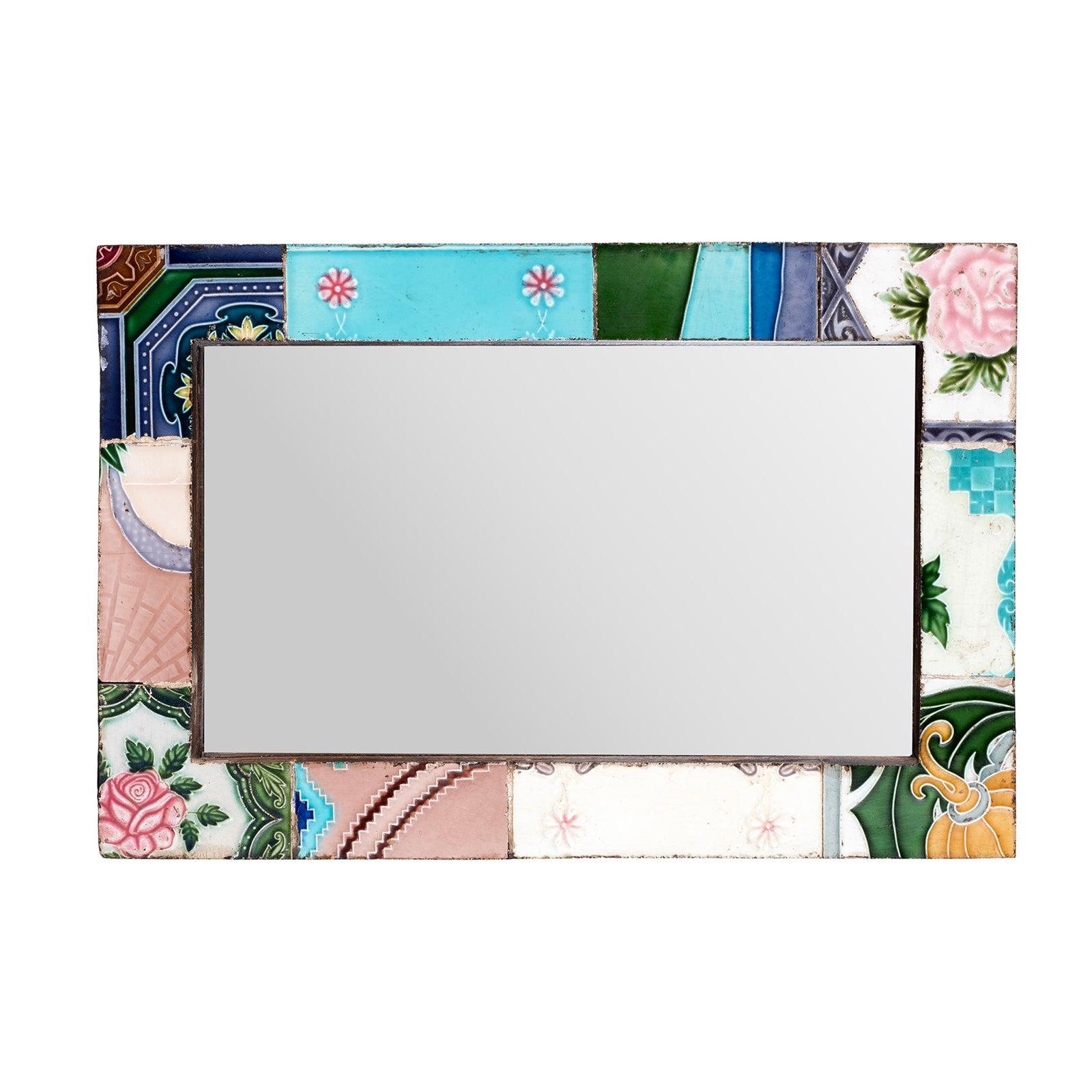 The tiles used here were sourced in India and have been carefully re-purposed into unique mirrors, each with its own lively combination of colours and patterns. Sold individually, they bring both history and artistry to modern interiors, perfect as a feature wall piece or as a distinctive gift.
