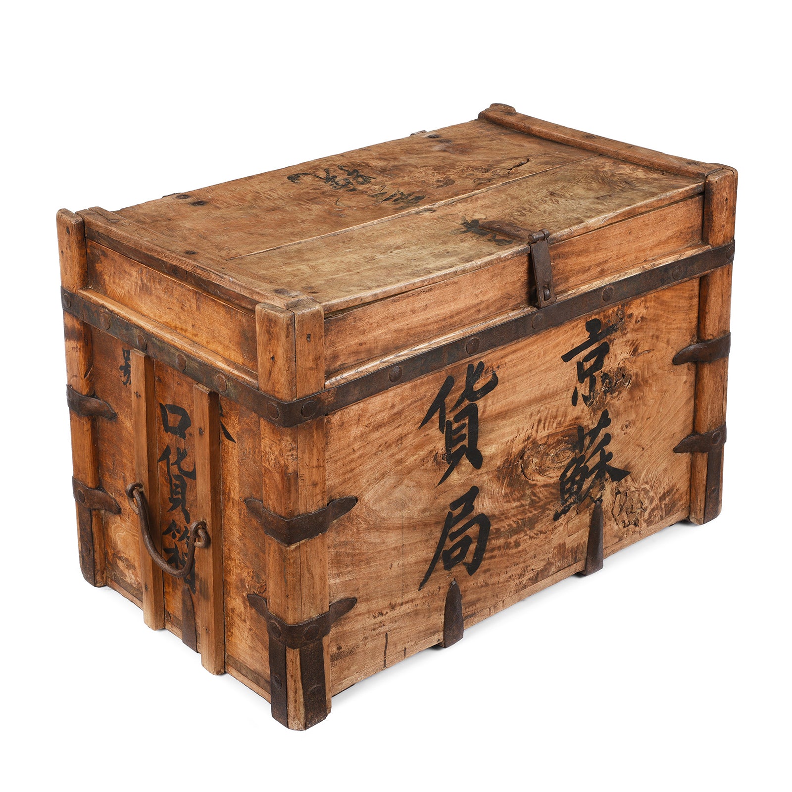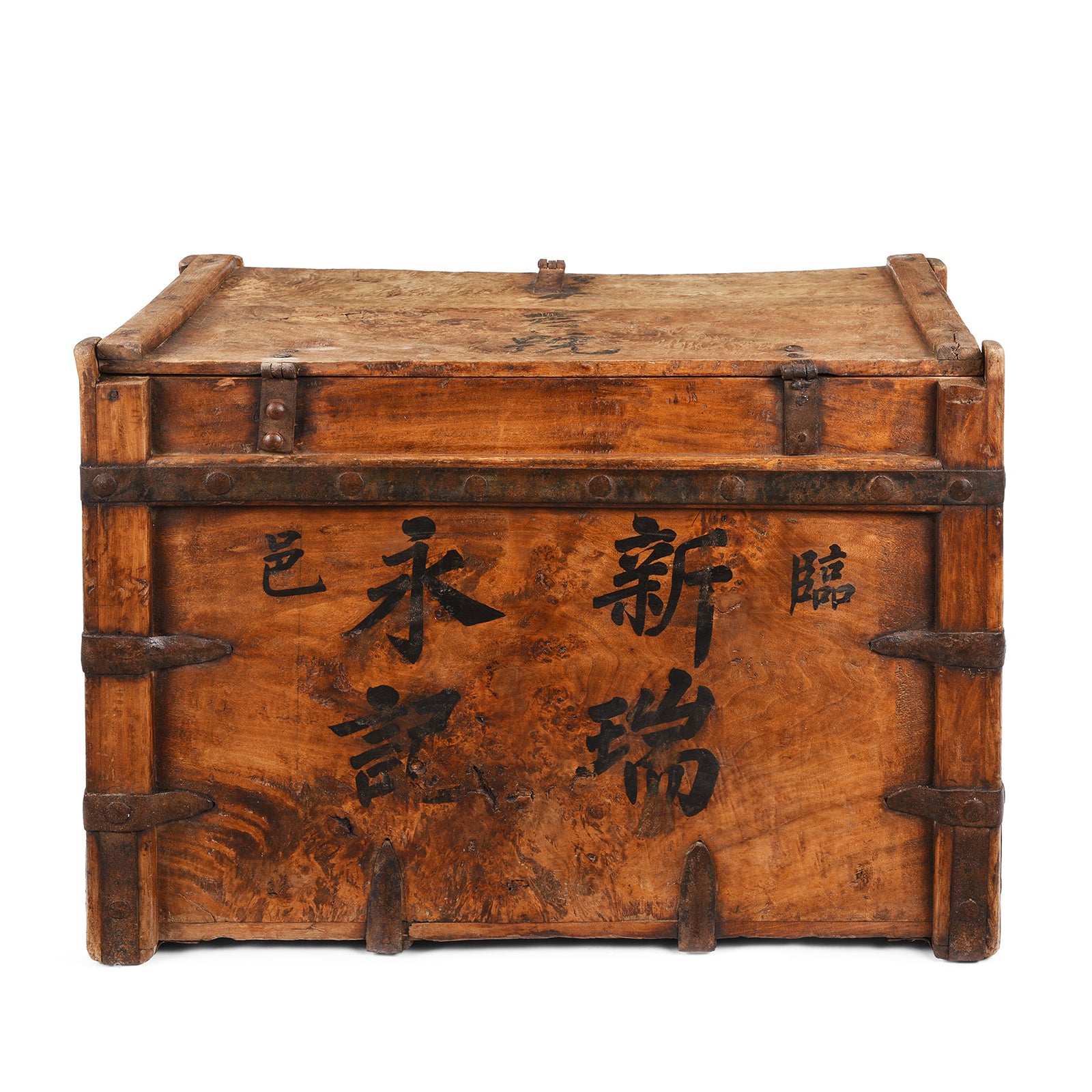 Back Of Nanmu (Fir) Iron Bound Hardware Shop Chest | Indigo Antiques